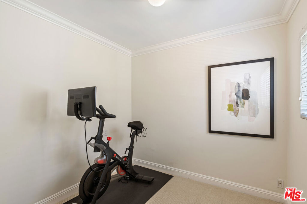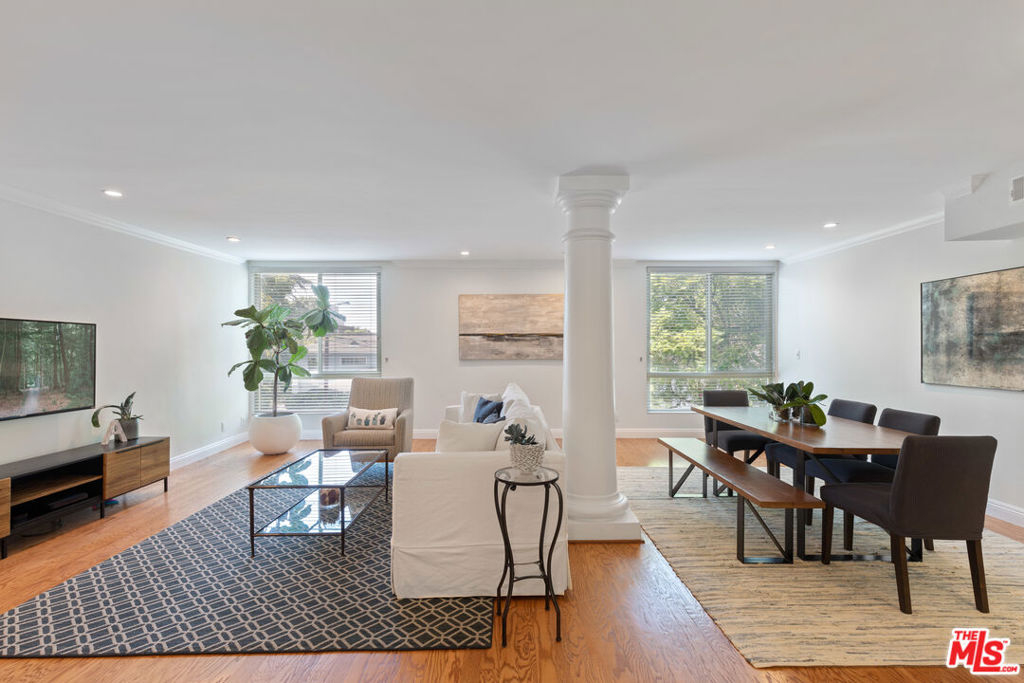 Chic and bright townhome with tree top views in the heart of Brentwood. Open floor plan and upstairs flex room perfect for gym, office or nursery, add versatility to the layout. Second floor has primary with a full bath, built-in storage bench and custom closet. Also upstairs are second bedroom, full bath and 8' x 8.5' flex room. In-unit laundry, two tandem parking spaces plus storage. Pristine building offers a relaxing pool and is walking distance to many restaurants and shops.