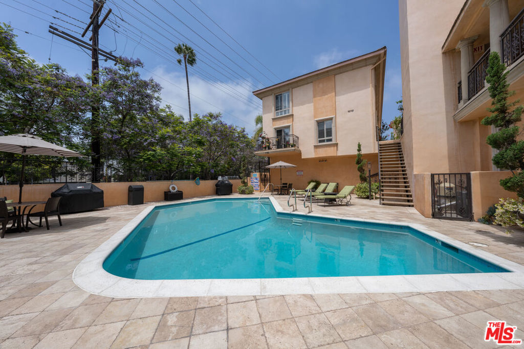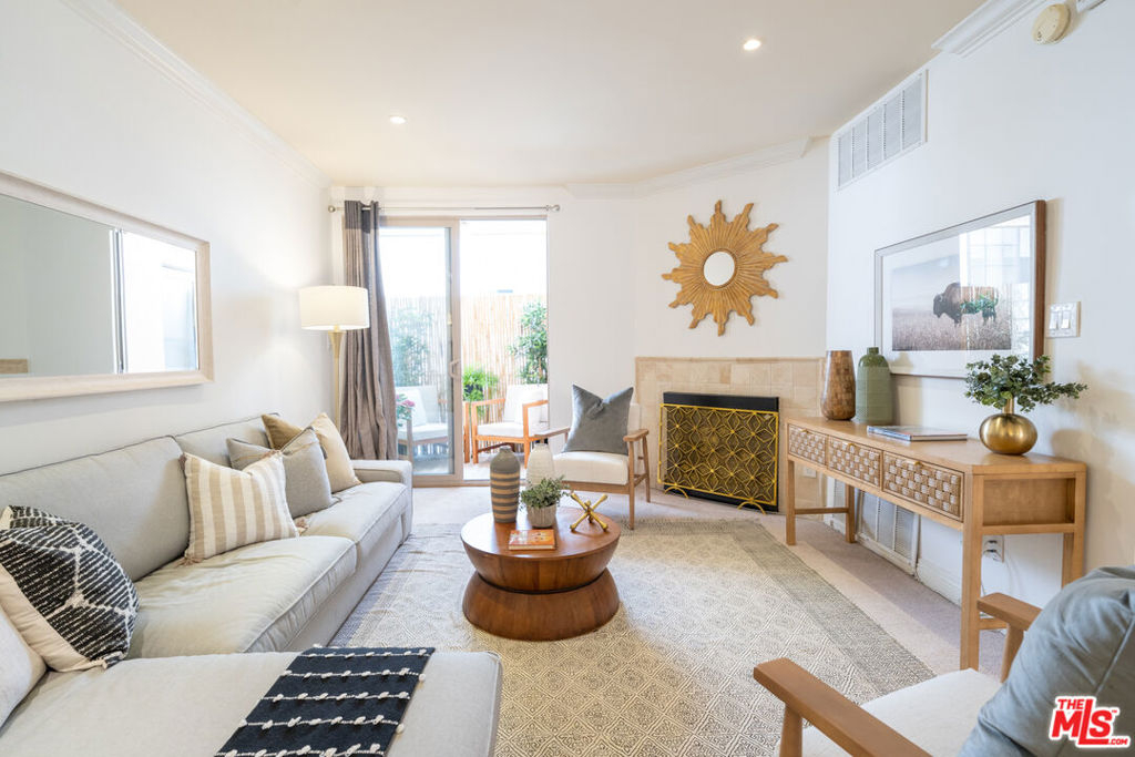 Welcome to one of the best areas of Brentwood and this 1bed + 1.5 bath open and light unit with private balcony/patio where you can enjoy your morning coffee. Open floor plan with spacious living and dining areas plus an additional space, perfect for an at home office or workout space. Well appointed kitchen with stainless appliances; refrigerator, stove/range + microwave. The large bedroom has amazing storage: a huge walk in closet plus two large additional closets and en suite bathroom. Powder room for guests. Fireplace in the living room. Spend the weekend relaxing by the sparkling resort style pool in a sunny courtyard setting with tree top views and BBQ areas or head out to take advantage of this fantastic location close to Whole Foods, Mendocino Farms, well known restaurants, coffee shops, yoga, Pilates and more. Recessed lighting, laundry in-unit, central AC/HEAT, pristine gated building, guest parking + storage. Low HOA dues. See Offer Guidelines in docs. Offers due Wednesday June 1st