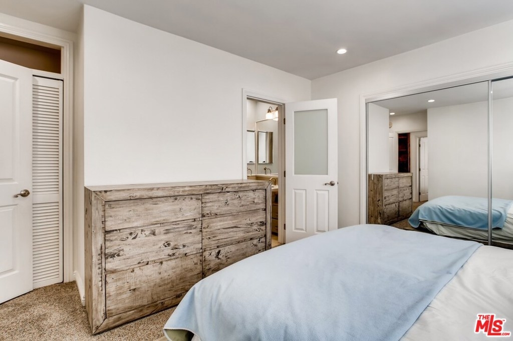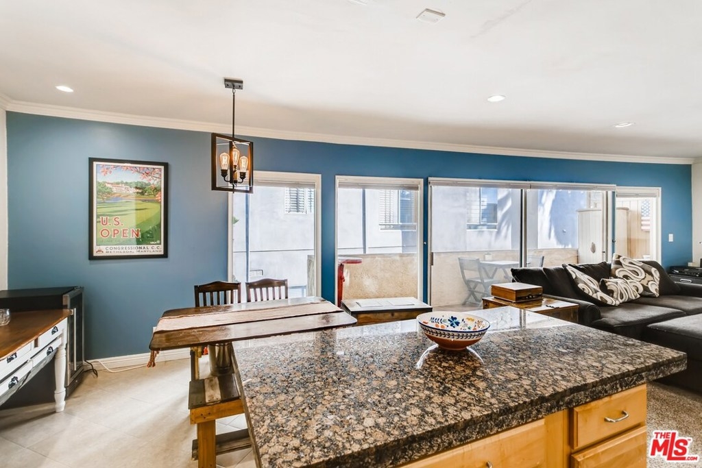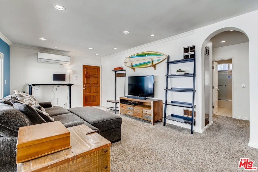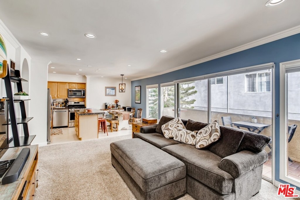 This light & bright 2BR/2BA condo featuring an open floorplan with a spacious & custom-tiled balcony feels much larger than it is. Large windows with custom shades span nearly the length of the indoor/outdoor living area letting in natural light and cool breezes. Its top-floor location affords peace & privacy on a quiet charming side street in the heart of Brentwood. Inside, pride of ownership is reflected throughout with fresh carpeting and paint, stainless steel appliances, recessed led lighting, new HVAC wall unit, tiled bathrooms. Move-in ready. Tandem 2-car parking and gated-entry off of Kiowa. Low HOA includes EQ insurance. New "cool" roof recently installed. Last sale in building sold 12/20 for $780,000. This amazing price point makes this buy opportunity better than renting. Motivated sellers moving out of the area.
