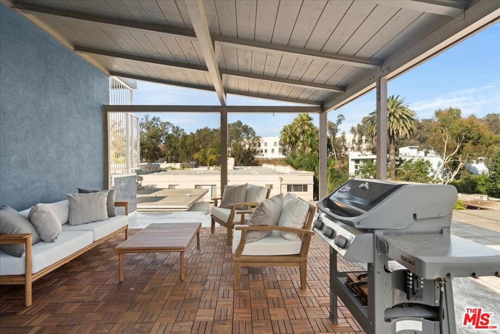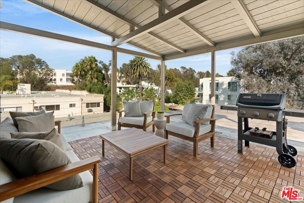 Discover this expansive two-bedroom, two-bath condominium that offers the feel of a single-level townhouse, thanks to its rare and extraordinary large deck and outdoor space that is entirely exclusive to this unit. This deck is one of the largest private outdoor areas in all of Brentwood, providing a serene, tree-lined view that creates a tranquil escape from city life. Imagine entertaining guests or enjoying a quiet evening in your own spacious outdoor living area, perfect for BBQs, lounging, or dining al fresco. Inside, the unit has been completely updated and renovated with meticulous attention to detail, blending modern luxury with functional design. The open floor plan offers a seamless flow between the living, dining, and kitchen areas, making it perfect for both everyday living and entertaining. High ceilings and abundant natural light enhance the spaciousness, creating a bright and welcoming environment. This unit also boasts the coveted Brentwood lifestyle - everything you could desire is just a quick stroll away. Enjoy the convenience of being walking distance to Whole Foods, Katsuya, and Brentwood Village, where you can find SoulCycle, Orange Theory, and some of the best restaurants and boutiques the area has to offer. Additional features include two tandem parking spots (numbers 15 and 16), providing ample parking space, and in-unit laundry for added convenience. This is a rare opportunity to own a beautifully renovated unit with a unique outdoor space in one of Brentwood's most desirable locations. Don't miss the chance to experience luxury living with the best of Brentwood right at your doorstep!