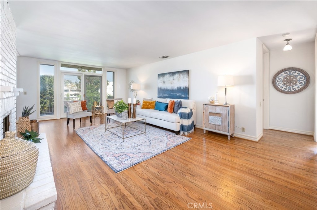 Front unit condo on third floor facing the mountains with great light and wonderful views!!! 2-bed/ 2-bath recently updated is located in the heart of Bentwood and awaits your arrival to make this your forever home. This special unit, with tall ceilings, master bedroom with lots of natural light and sunset views, large master bath and walk- in closet. Second bedroom seperated from master has its own bathroom. It also gets amazing light. Central AC and Heat. Kitchen is super clean and practically not used has lots of storage and plenty counter top space. Open living room floor-plan. Newer hardwood floors throughout with a fireplace bordering the kitchen and living room. The large sunlit balcony completes this charming condo. Common area features include updated lobby, tastefully renovated hallways, laundry on each floor, secured garage parking, and landscaping. This secured building has a controlled access elevator and two gated underground parking spots #24 and #25. It is conveniently and centrally located close to various parks, hiking trails, local schools, major universities, Getty Museum, Sunset strip and Wilshire Boulevard, where the bars, restaurants, and nightlife are a moment away in Beverly Hills. If you want to live in an area of Los Angeles that is close to everything with outstanding neighborhoods, culture, and things to do, then you just found your new home.