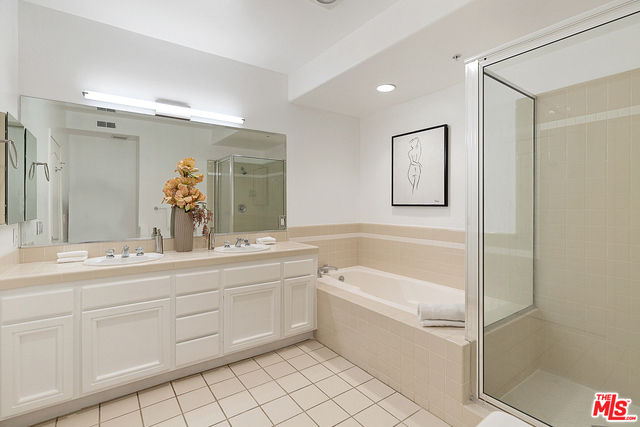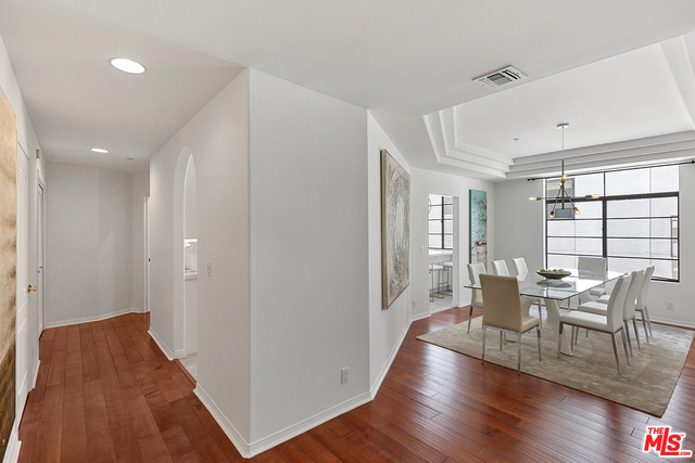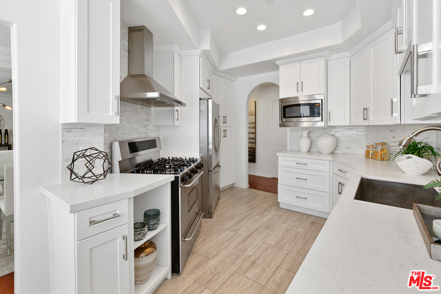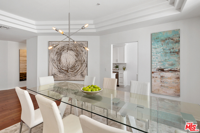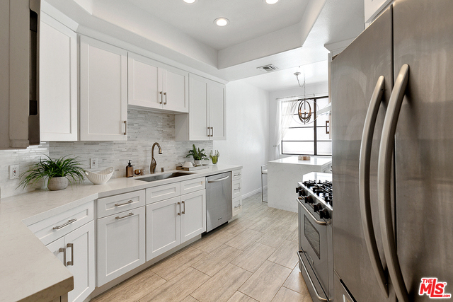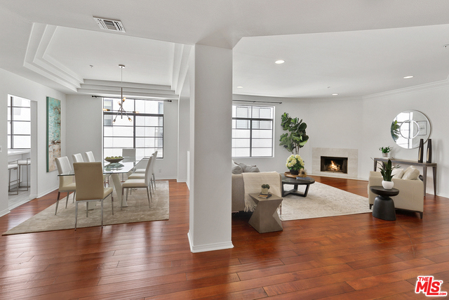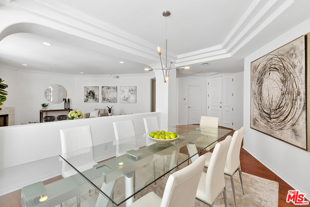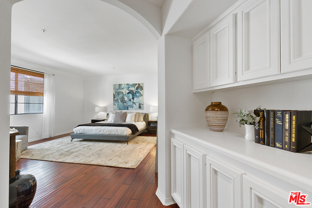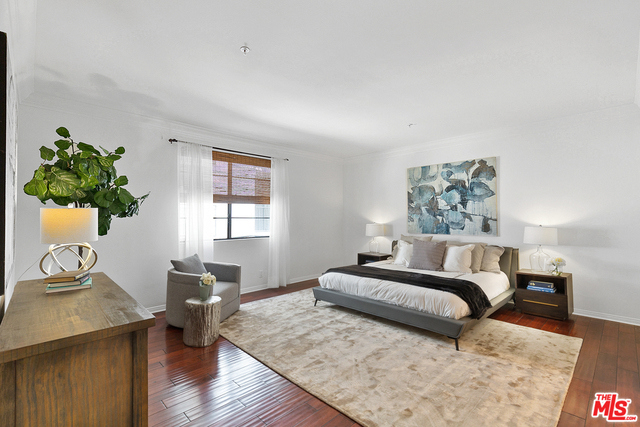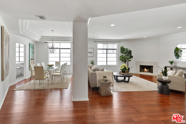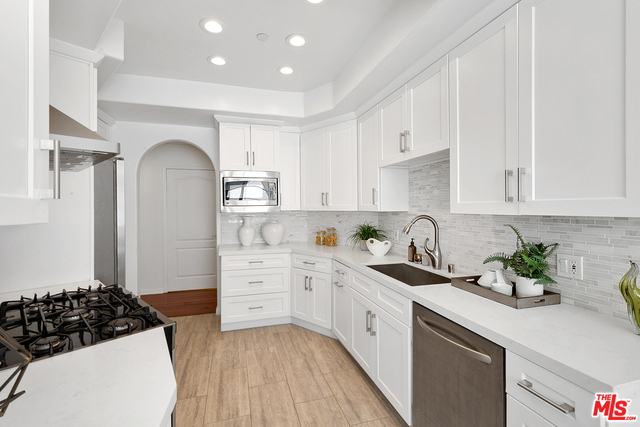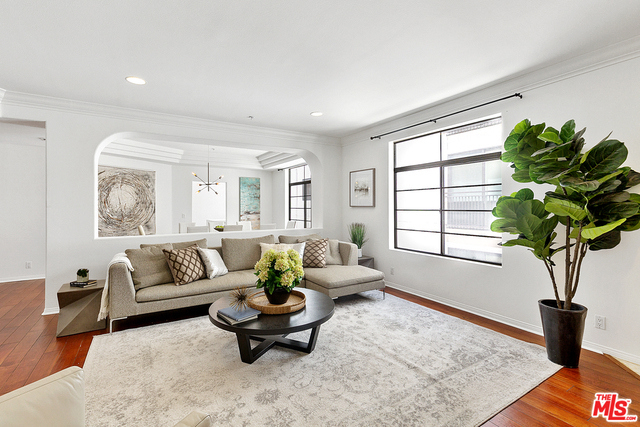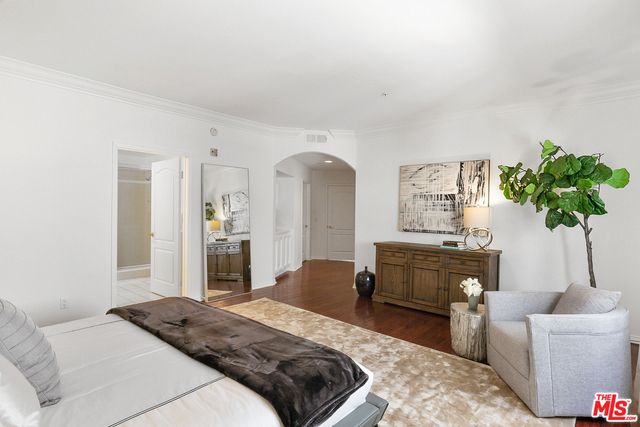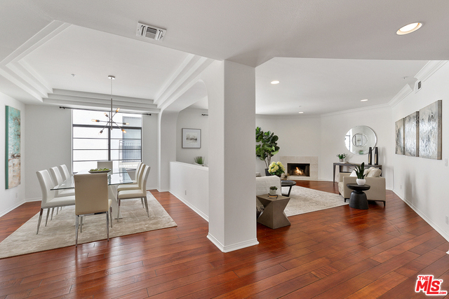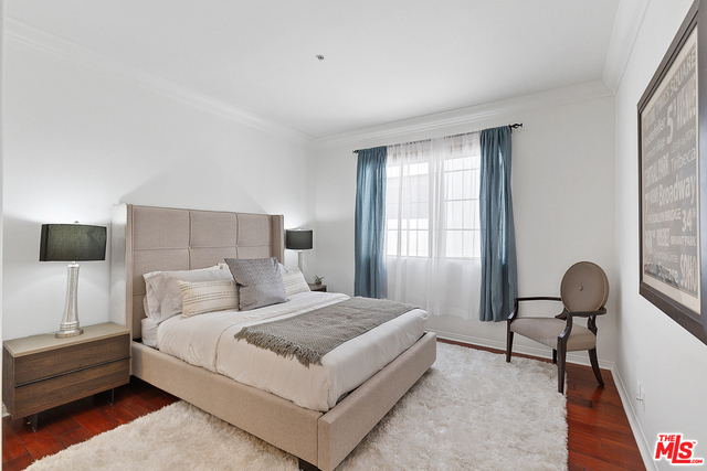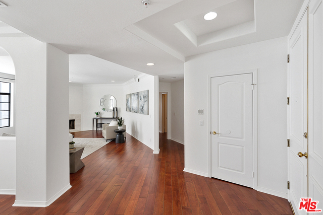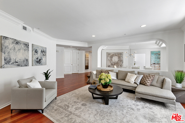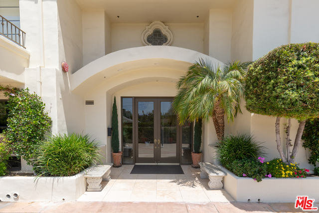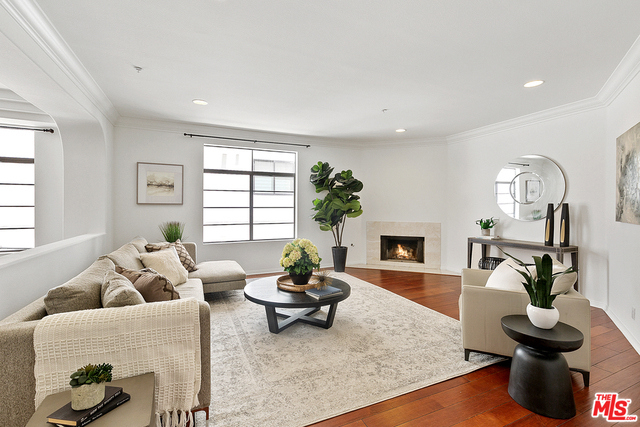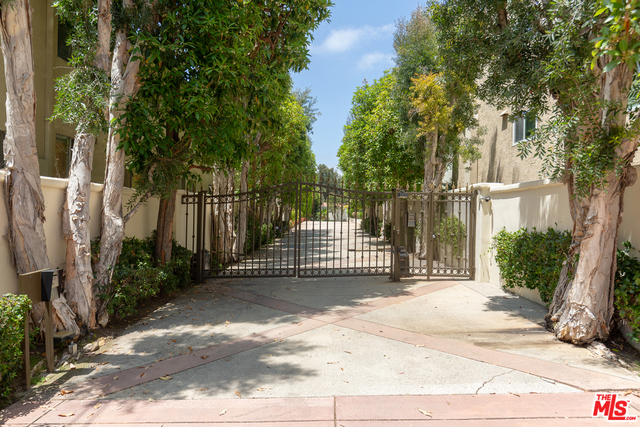 Behind a gated entrance off Barrington discover a long tree lined private driveway that leads to this highly sought after luxury 2bd+2.5ba, 1735 SF condo in the heart of prestigious Brentwood. Move-in ready, Elegant & peaceful single level newer (1991) Contemporary Mediterranean unit featuring double door entry into impressive open floor plan living room boasting hardwood floors, large light filled windows, oversized crown molding, marble fireplace, & opens to a dining area w/ coffered ceiling. The gorgeous remodeled gourmet kitchen boasts, Caesarstone countertops, custom cabinetry, Carrera marble backsplash, built-in breakfast table, stainless steel appliances, & recessed lighting. On opposite sides of the unit, 2 large private bedroom suites both w/ hardwood floors. Luxurious Master bedroom has a large walk-in closet, spa bath w/ dual sinks, & separate soaking tub & shower. 2 side x side parking garage spaces w/ storage. Located near Village restaurants, shops, rec center & dog park.
