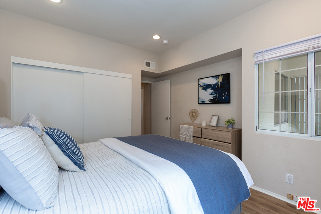 This gorgeous 2 bedroom, 2.5 bath, 1,260 (+/-) SqFt, turn-key townhouse style condo is ready for you to call home! As you enter through the front door, you will admire the 9 ft+ high ceilings and high-end finishes including hardwood and laminate floors. The newly updated gourmet kitchen boasts stainless steel appliances, white cabinets, quartz countertop, & subway tile backsplash that is adjacent to the dining nook. The spacious living room is filled with natural light from the large windows, and a gas fireplace accented with sleek stone tiling. Across from the living room is a bonus area for a potential office space. Upstairs you will find the master suite that features a walk-in closet, a private balcony and a spacious updated ensuite. Adjacent to the master suite will be a second bedroom, full bathroom and an enclosed laundry area. This lovely community features a 2 tandem car garage, ample guest parking and a fitness center. Conveniently located in beautiful Brentwood near shops and restaurants, highly rated schools, tennis courts, hiking trails, dog parks and more! Easy access to 405 and 10 freeways. Close proximity to Santa Monica and UCLA. You wont want to miss out on this opportunity!