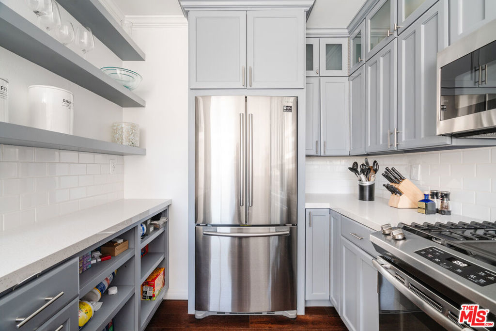 Newly renovated south facing 2BD/2.5BA condo in the heart of Brentwood, only a few blocks from San Vincente's shops, restaurants, Whole Foods and the famous Brentwood Farmers Market. Every inch of this stylish home is well thought-out and no expenses were spared! From the soaring 18-foot ceilings w/ double height windows that flood this unit w/ light, to the open living room with modern fireplace and gorgeous hardwood floors, this home is as functional as it is luxurious. The sleek modern kitchen features new counter tops, custom cabinetry, ample storage & stainless appliances. Plus, a separate elevated dining area and office nook with custom bookcase, perfect work from home space. Upstairs you will find the master suite that features a private balcony, large customized walk-in closet, and a beautifully remodeled ensuite bathroom with designer finishes. Adjacent to the master suite is a second bedroom, fully remodeled bathroom and enclosed laundry area. Additional upgrades include: new HVAC, NEST system, custom motorized blinds, home security system, all new doors & custom crown molding throughout. Plus, building amenities: 2 tandem parking spots in secured garage, fully equipped gym, ample guest parking spaces, and 24-hour building surveillance for maximum security. Conveniently located near highly rated schools, tennis courts, hiking trails, dog parks and more!