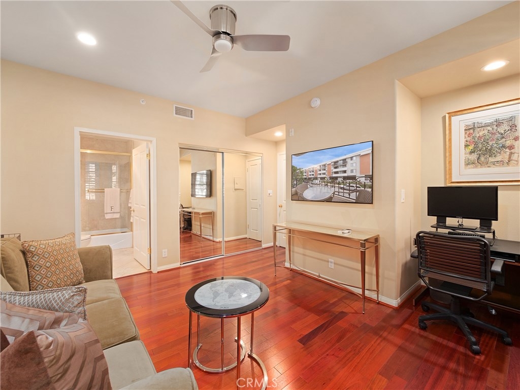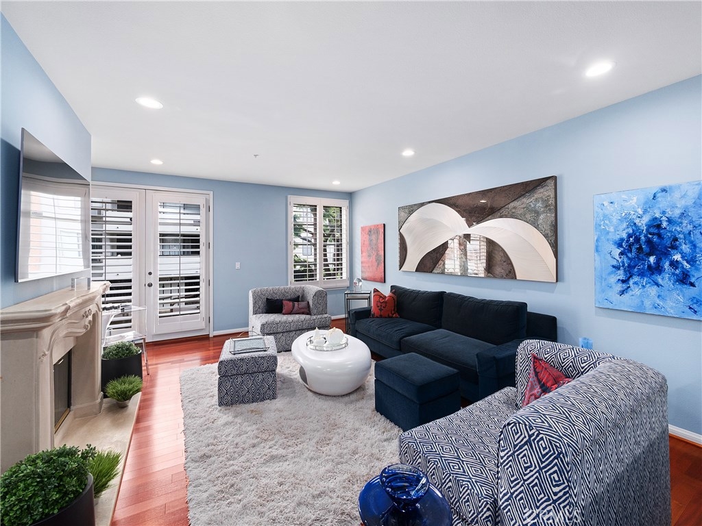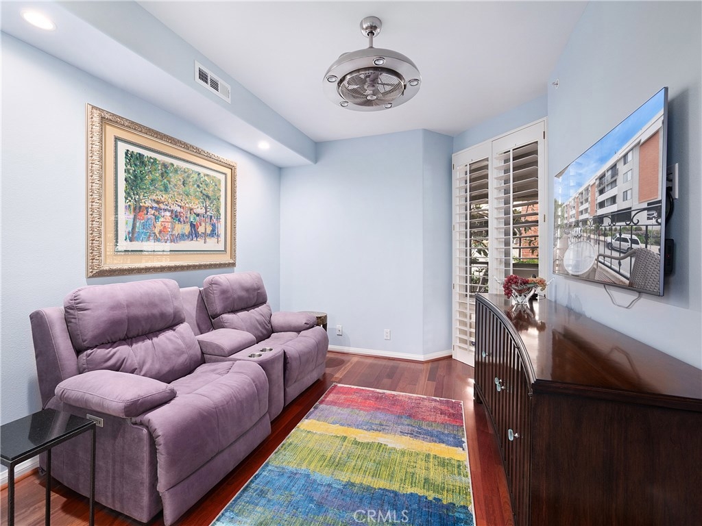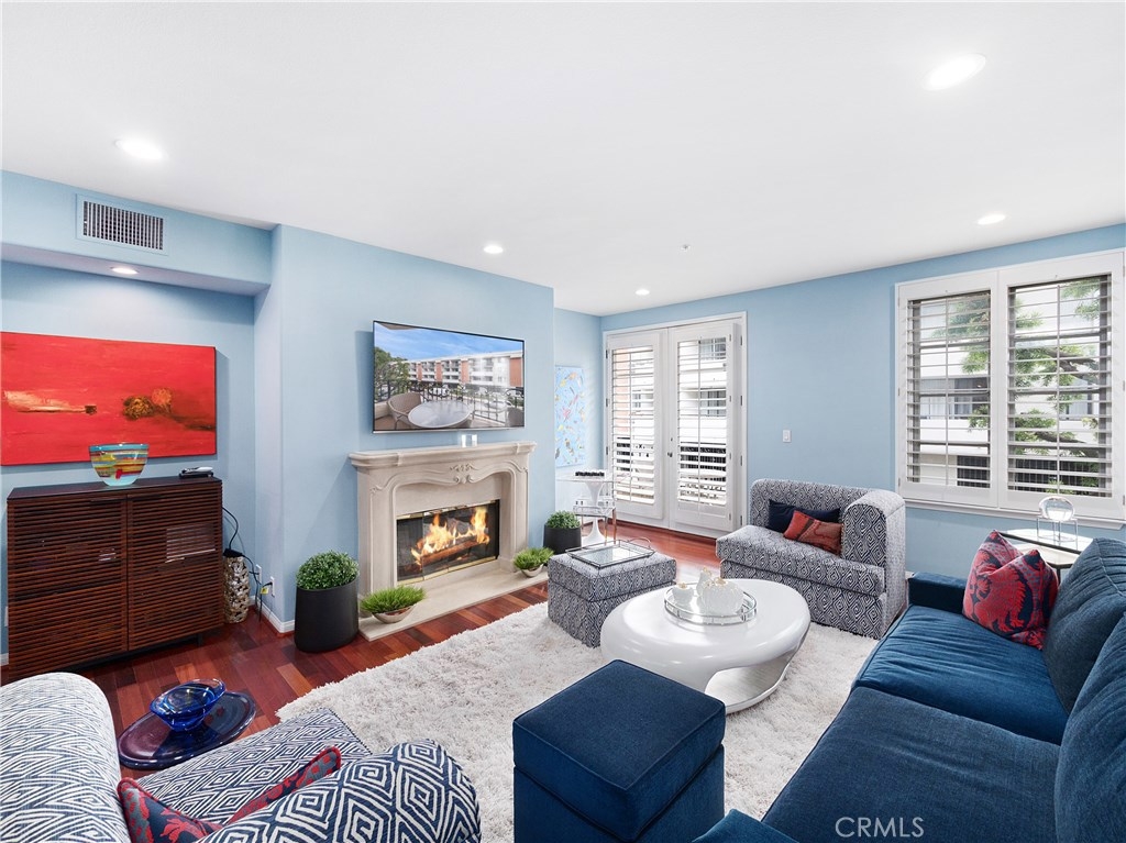 Designer dreams and esthetic goals. A condo so spacious it feels like home. Enter this modern tuscan abode and you're greeted with sparkling wood flooring throughout the unit. The wide entry corridor lures you to the kitchen boasting new appliances, ceramic tile countertops, and copious white wood cabinetry. The kitchen conveniently features a private extra room- perfect for an office, media room, or another bedroom. Adjacent to the kitchen is the spectacular newly mirrored dining room illuminating the area and enlarging the room. The plush modern living room is bright with natural light, yet still warm with the cozy fireplace. The oversized master bedroom is complete with designer wallpaper, walk in closets, master bathroom with dual sinks and stunning bath and shower. Another guest bedroom features a convenient office nook and a private bathroom. This unit has been recently updated with new recessed lighting, plantation shutters throughout, electrical wiring, designer wallpaper, new toilets and appliances. Conveniently located in the heart of Brentwood- a stone's throw for all the shopping, dining, and attractions of this glamorous city. Your new home glamorously awaits.