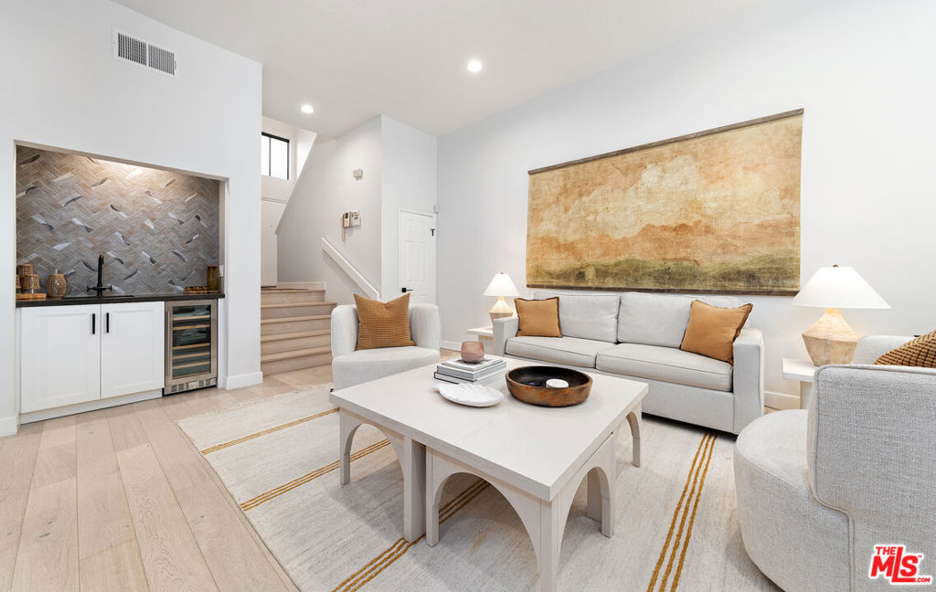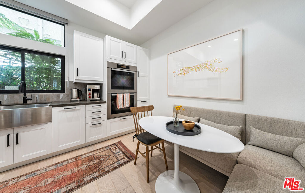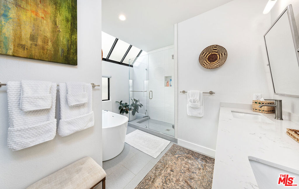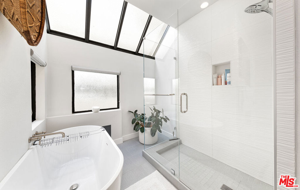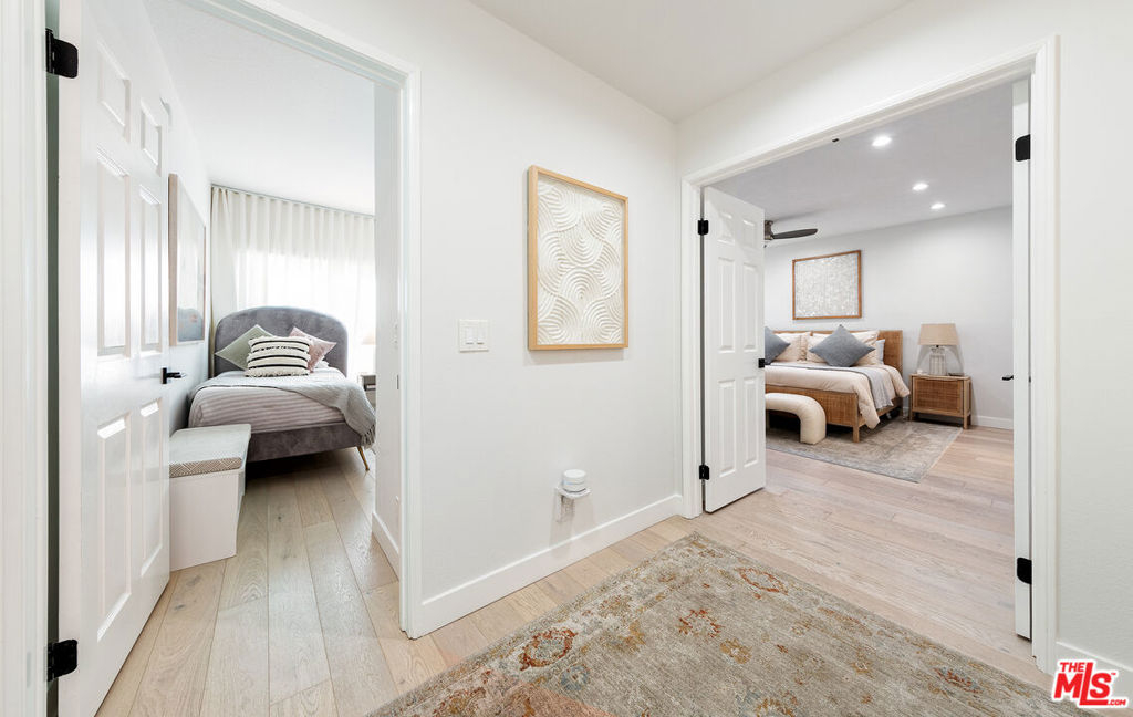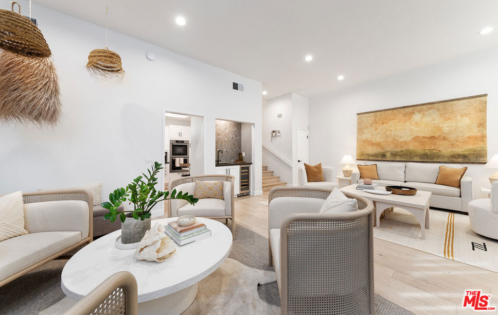 Experience the ultimate in style and comfort with this newly designed townhouse-style condo in a prime Brentwood location. Upon entry, you'll be greeted by an impressive foyer leading to an open living and dining space with soaring ceilings, a decorative fireplace, and a sleek bar area. Wide-plank flooring, bright walls, and stunning contemporary fixtures enhance the sophisticated vibe. The kitchen is a masterpiece with custom cabinetry, high-end stainless steel appliances, and a serene garden planter view overlooking the pool. The primary suite offers a tranquil escape, featuring a decorative fireplace, a dressing area, and a spa-inspired bath with double sinks, a floating tub, and a luxurious shower. Upstairs, a second light-filled bedroom and a chic modern bathroom complete the space. Additional perks include a stylish laundry room, two individual parking spots, and extra custom storage. Residents can also enjoy the courtyard pool, spa, and guest parking.
