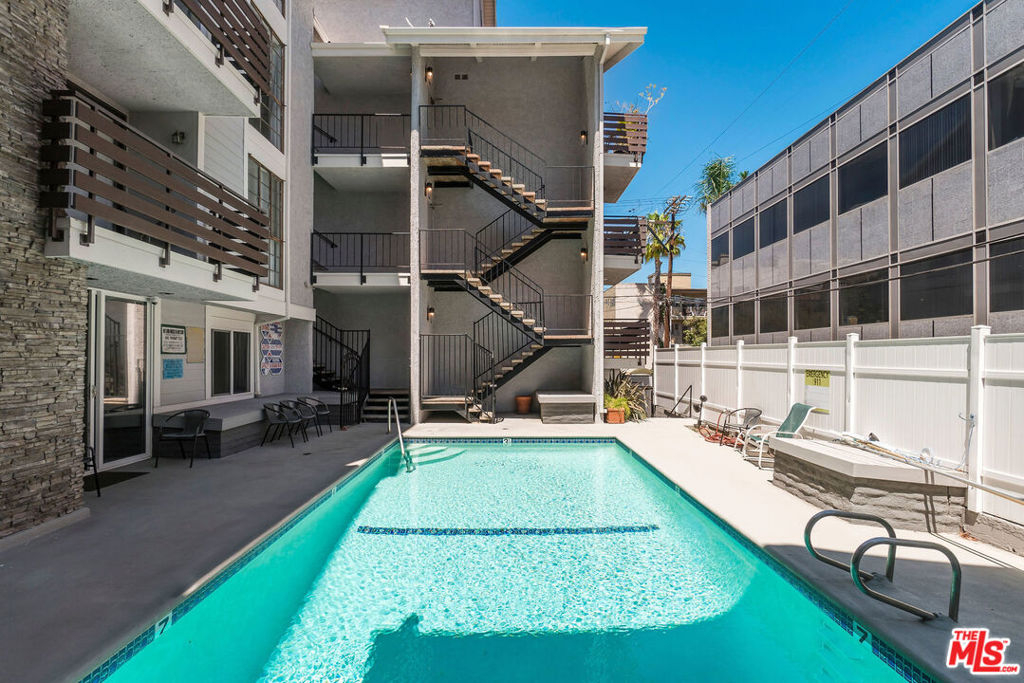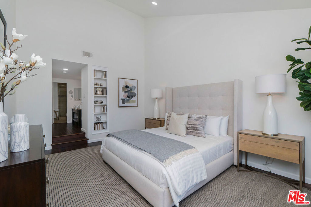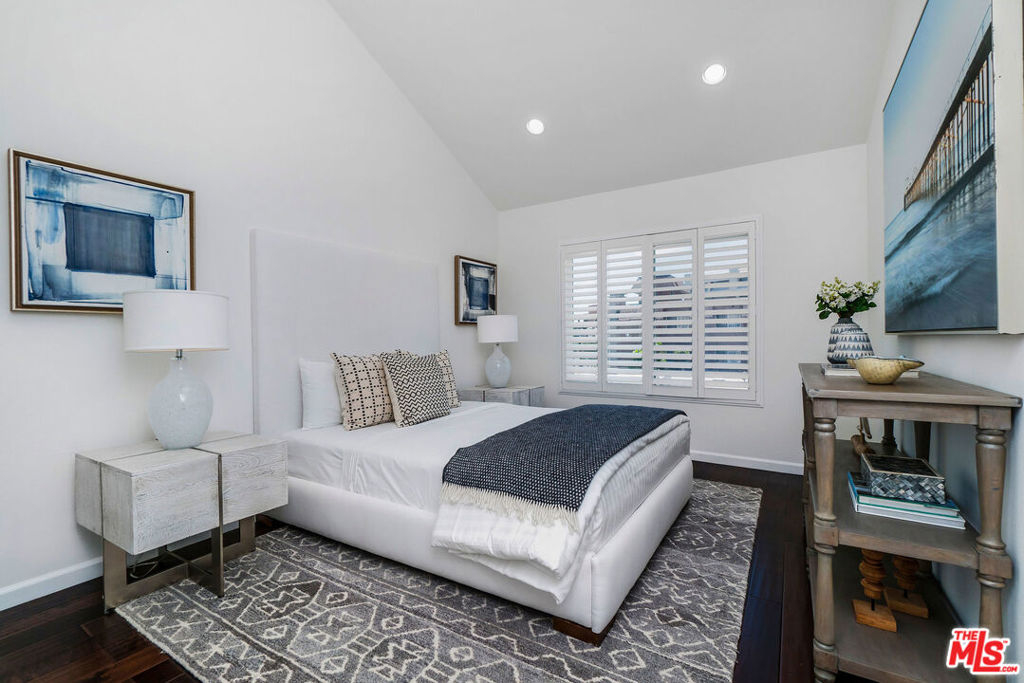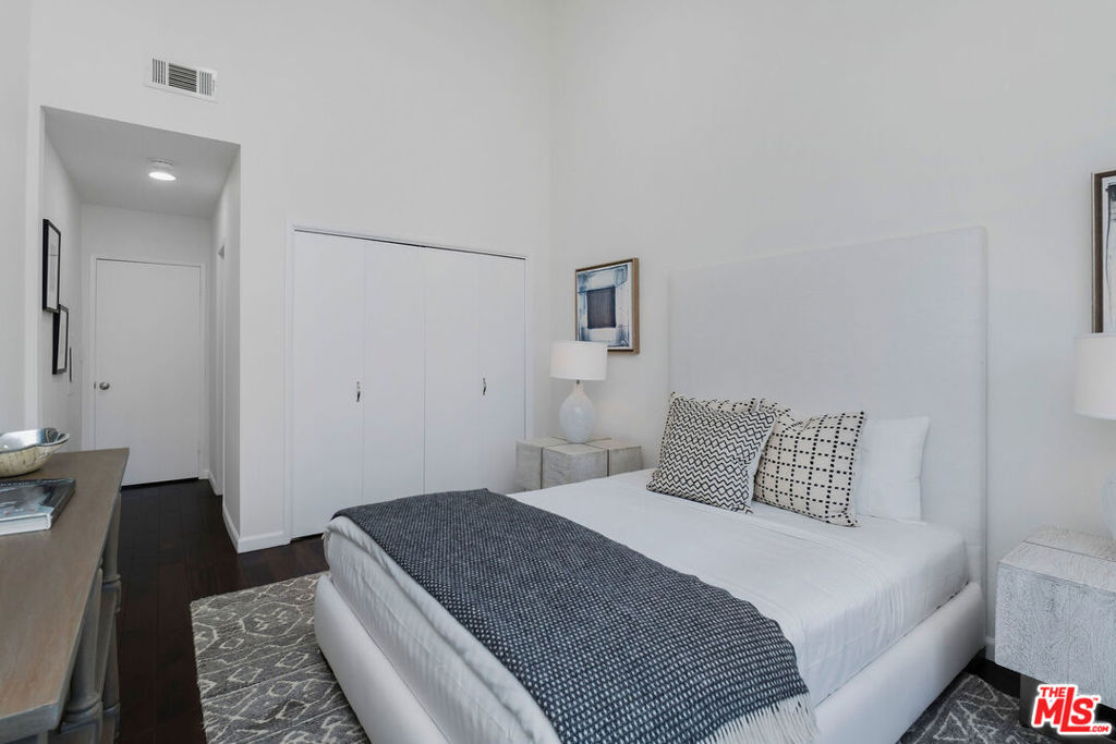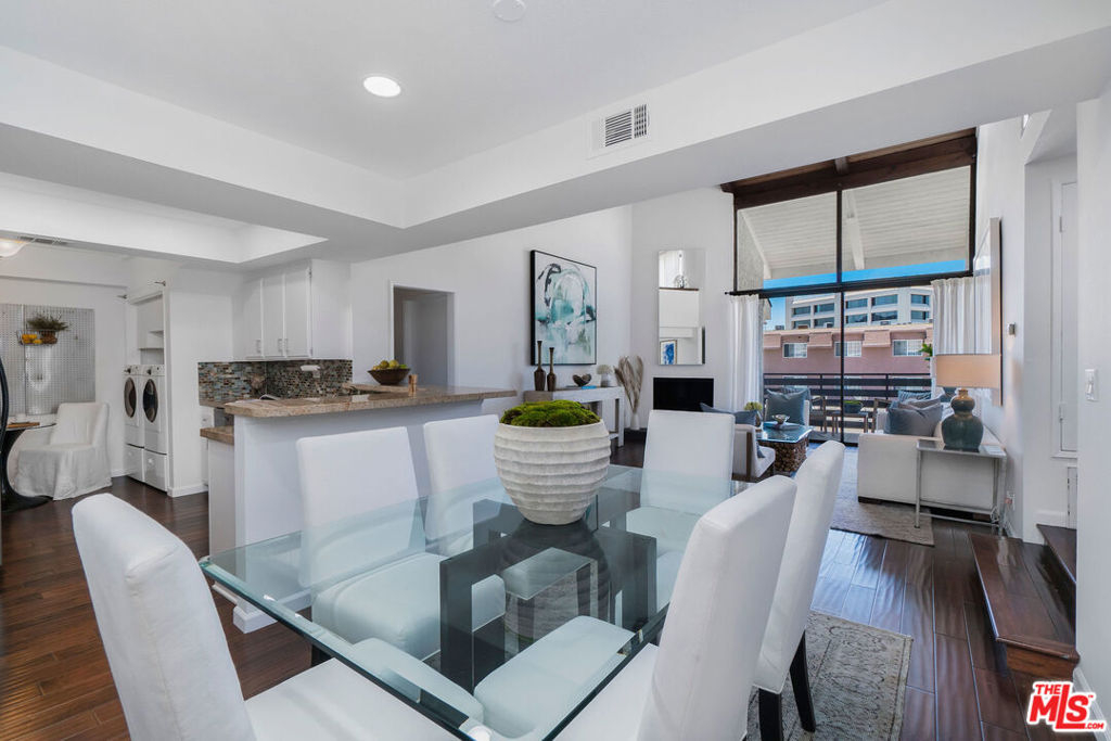 A rare opportunity to own a distinctive top-floor condominium, conveniently located in close proximity to Brentwood's many popular shops and restaurants! The highlight of this impressive unit is the dramatic two-story living room punctuated by spectacular vaulted wood ceilings and an abundance of natural light. The sliding glass door leads to a private balcony with a glimpse of a southwest city-to-ocean view. The spacious dining area and open kitchen with a cozy breakfast nook are perfect for entertaining. Both generous-sized bedroom suites are well separated for privacy and feature vaulted wood ceilings. The large loft is ideally situated for use as an office, den, or playroom. Common-area amenities include two side-by-side parking spots and some overhead storage in a gated garage, as well as an inviting pool and a well-equipped fitness center. Do not miss this chance to enjoy an enviable living experience in much sought-after Brentwood!