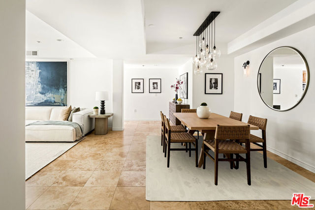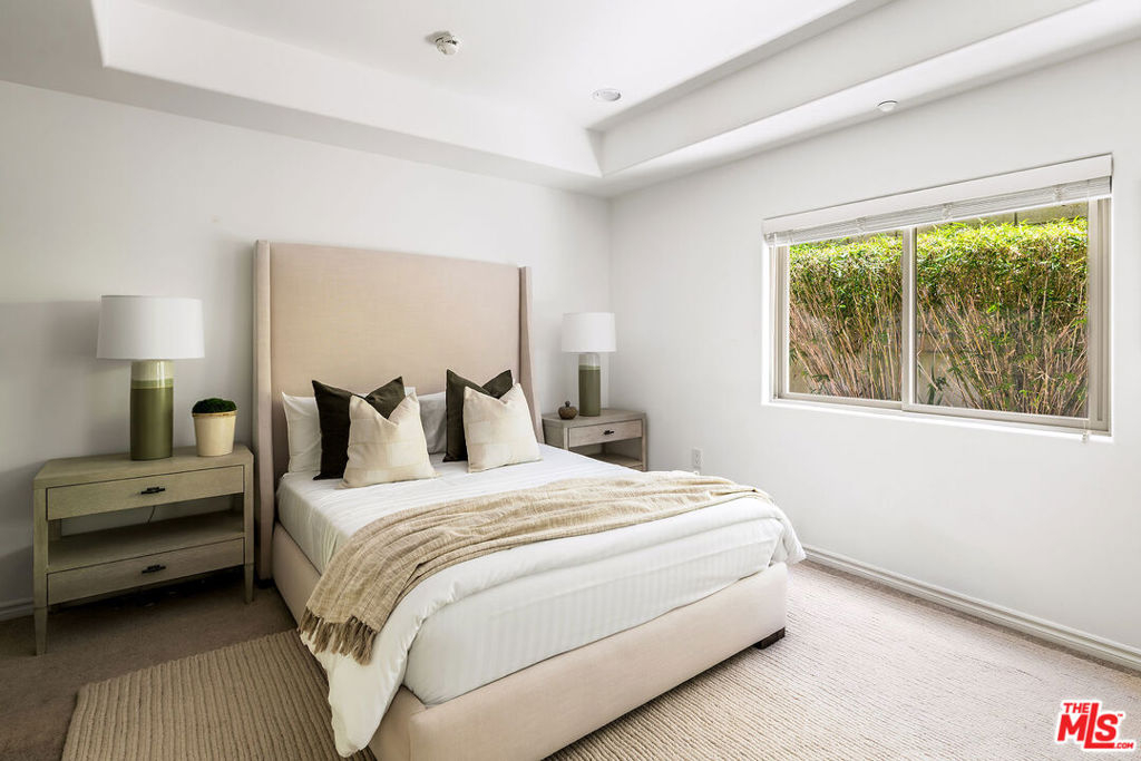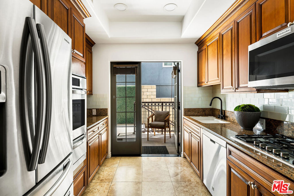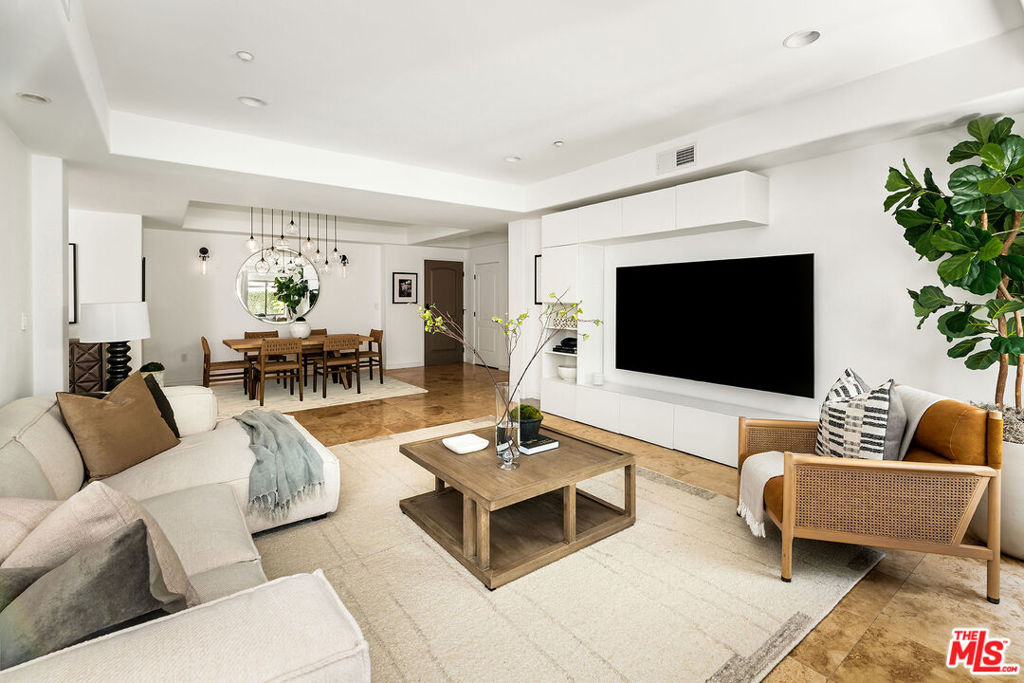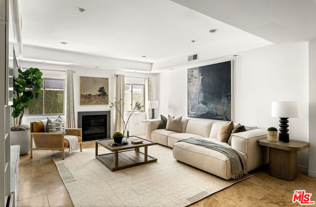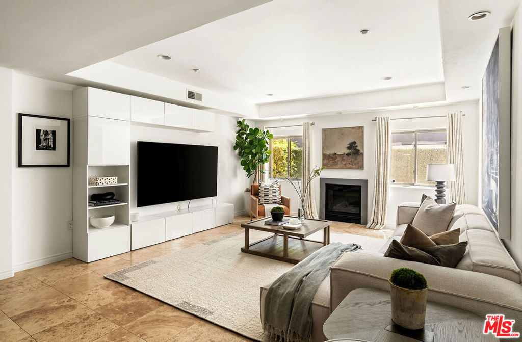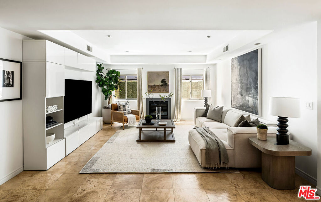 Located on one of Brentwood's most charming tree-lined streets, this 2-bedroom, 2.5-bath condo offers a rare blend of privacy, space, and prime Westside living. Elevated above street level with no neighbors below, the unit features direct entry through a private side patio, providing a unique sense of seclusion and ease. The open-concept layout spans approximately 1,500 square feet and features high ceilings, travertine floors, and a generous living area with plenty of space to relax or entertain. The kitchen is outfitted with stainless steel appliances, oak cabinetry, and ample storage, with room for a breakfast nook and access to the side patio. The spacious primary suite includes a walk-in closet and an en suite bathroom with dual vanities, a soaking tub, and a separate shower. A second bedroom with its own en suite bath offers flexibility for guests or a home office. A separate laundry room with side-by-side washer and dryer adds everyday convenience. Additional highlights include central HVAC, a gas fireplace, and two tandem parking spaces in a secure, gated garage with available EV charging. Set in a quiet, 11-unit building, this home blends the comfort of residential living with close proximity to San Vicente's top restaurants, cafes, parks, and the beloved Brentwood Farmers Market.