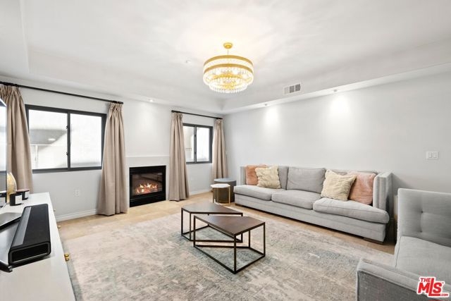 This delightful, fully furnished luxury condominium is positioned away from a tree-lined cul-de-sac street, offering a sense of calm in a boutique building in prime Brentwood. The stylish formal living room is appointed with an elegant chandelier, fireplace, and golden chevron accent wall. Tray ceilings in nearly every room add depth and dimension to each space, enhancing the home's feeling of peace, comfort, and solitude. The kitchen is beautifully updated with ample white cabinetry, bronze hardware, farm sink, and state-of-the-art appliances including Wolf range with hood and pot filler. A French door opens to a private covered balcony, perfect for al-fresco dining and relaxation, and there is also an adjacent eat-in area. Nearby, the foyer opens to the formal dining room which could also be utilized as a parlor or sitting room for tea and conversation. The primary bedroom is large and features an en-suite bath with dual-sink vanity and separate tub and shower as well as a walk-in closet with custom built-ins. There is also side-by-side laundry in unit and two tandem parking spaces with dedicated EV charger in the secure, controlled-access subterranean garage. Welcome to this excellent, coveted location amidst Brentwood's numerous fine restaurants, eateries, and boutiques, all just moments to Santa Monica beaches, Beverly Hills, freeways, and the very best of the Westside.