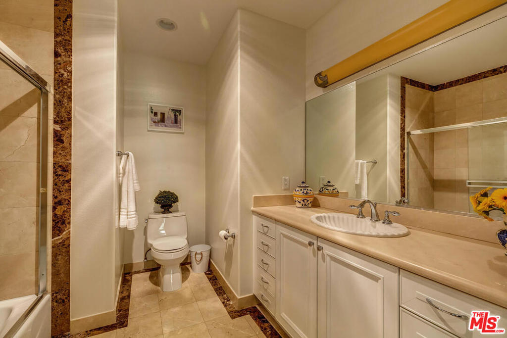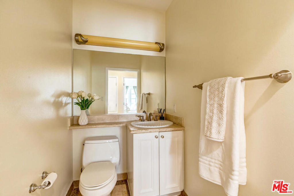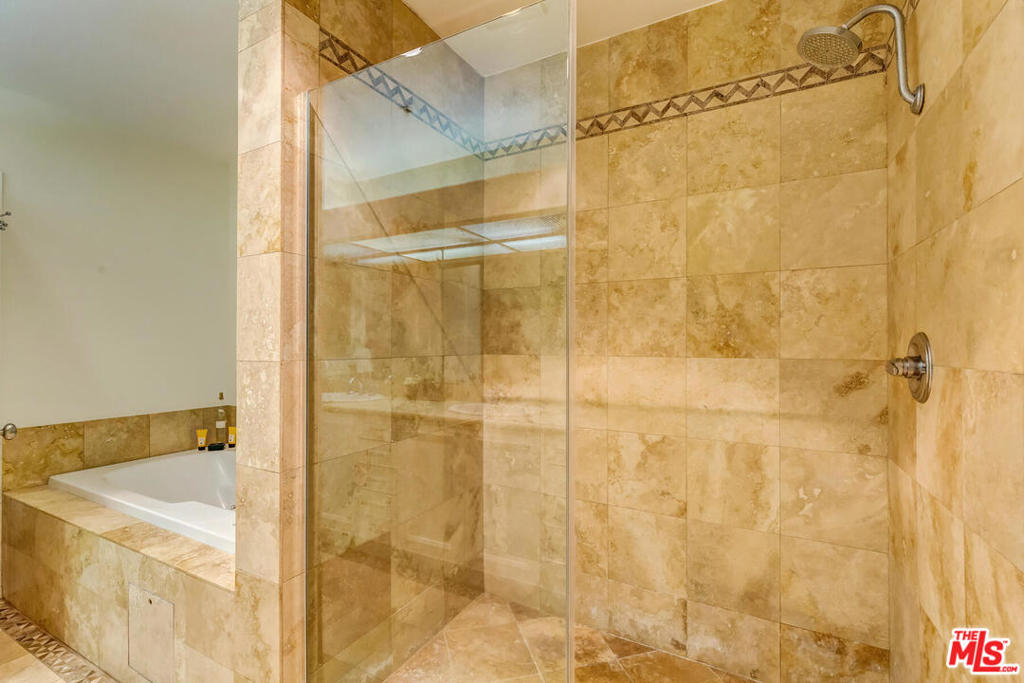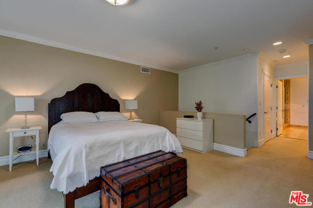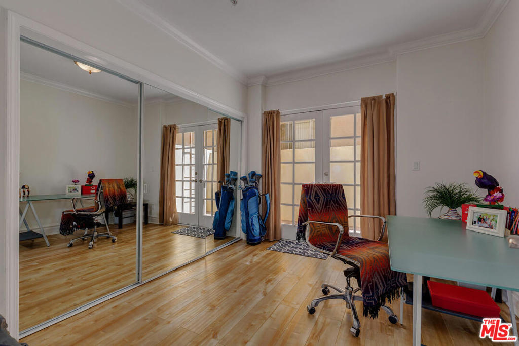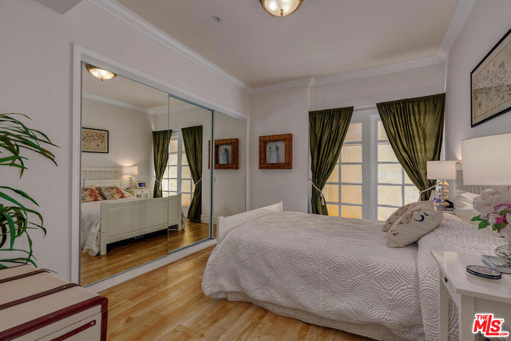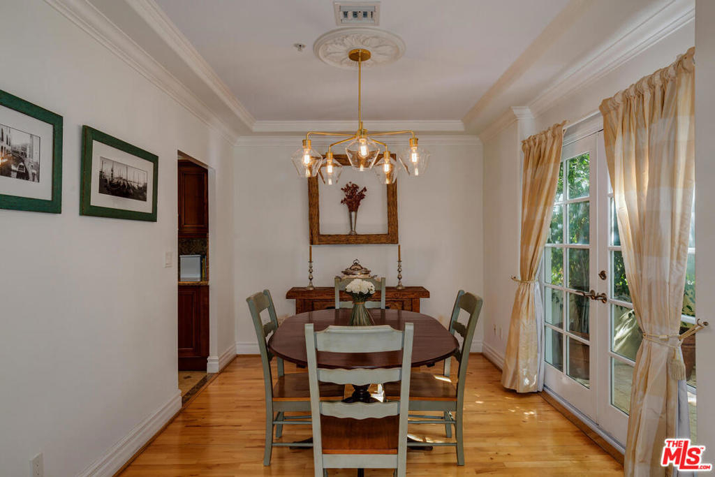 Spectacular and spacious townhome that features a separate entrance that feels more like a private home. Lucious greenery surrounds this 2-story townhome. From the front door you enter into a great, open living area with a mantel fireplace. French Doors lead to private patios and let in an abundance of light. A Gourmet Kitchen has Viking appliances and wonderful Italian granite countertops. A separate dining room is perfect for intimate dinner parties, or open the French Doors for al fresco entertaining. Two wonderfully large bedrooms on the main level have their own private patios and sliding doors that let in beams of light. Powder room for guests. And a full bath is reserved for the two bedrooms. Upstairs is the Master Suite retreat complete with a fireplace, walk-in closet and ensuite spa bath with separate shower and sunken tub. All this and direct access to your own secured parking right outside your back door. Gym too. Just minutes to all of Brentwood, Santa Monica.