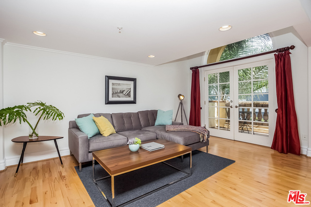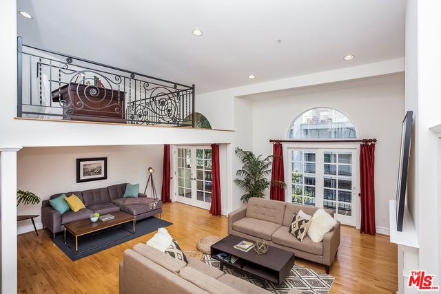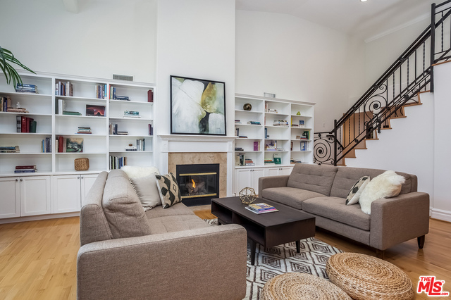 Beautiful and bright corner 3bd Penthouse with additional large bonus loft, soaring high ceilings and a spacious private rooftop deck! The living room features custom cabinetry, fireplace and extra high windows for additional light. Large master bedroom with fireplace & soaring ceiling and spacious his/her walk-in closet. Have a glass of wine or dinner "al fresco" on the private rooftop deck with beautiful views. Laundry room in unit. New carpets and paint. Plenty of storage space and lots of guest parking. Prime Brentwood location, close to restaurants, WhlFoods Mrkt, shops and fwy. This is a must see and won't last long!