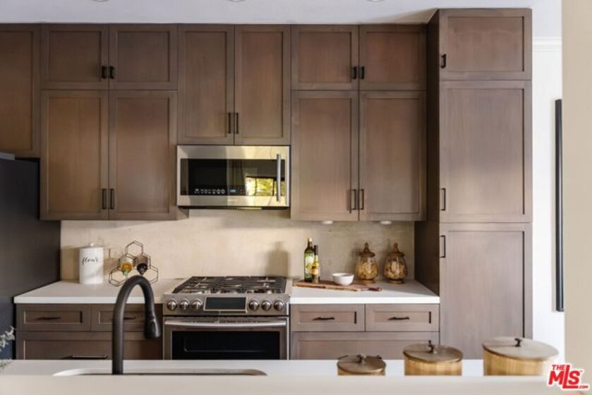 Positioned in the heart of Brentwood, this expansive and beautifully remodeled front-facing residence offers the scale, light, and flow rarely found in condominium living. Set on the second floor and framed by mature treetops, the home enjoys a serene, elevated outlook within a secure and well-maintained building delivering the privacy and ease of a single-family feel with the convenience of an urban lifestyle. The thoughtfully designed layout spans just under 1,700 square feet and features a generous open-concept living and dining area anchored by high ceilings, abundant natural light, and a fireplace that creates warmth and dimension. The kitchen has been reimagined with custom cabinetry, quality finishes, and a seamless connection to the main living space, making it ideal for both everyday living and effortless entertaining. Two spacious bedrooms and two well-appointed bathrooms provide comfort and flexibility, while in-unit laundry, ample storage, and refined details throughout reflect careful attention to design and functionality. Additional highlights include secure gated entry, assigned parking, and a welcoming residential community. Located just moments from Brentwood Village, steps from La La Land Cafe and Layla's Bagels, and minutes from the beaches of Santa Monica, this residence offers an exceptional blend of space, style, and walkable conveniencealong with easy access to the 405 for seamless connectivity across Los Angeles. A polished Brentwood offering that truly stands out.
