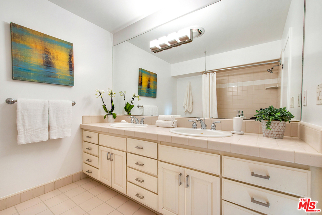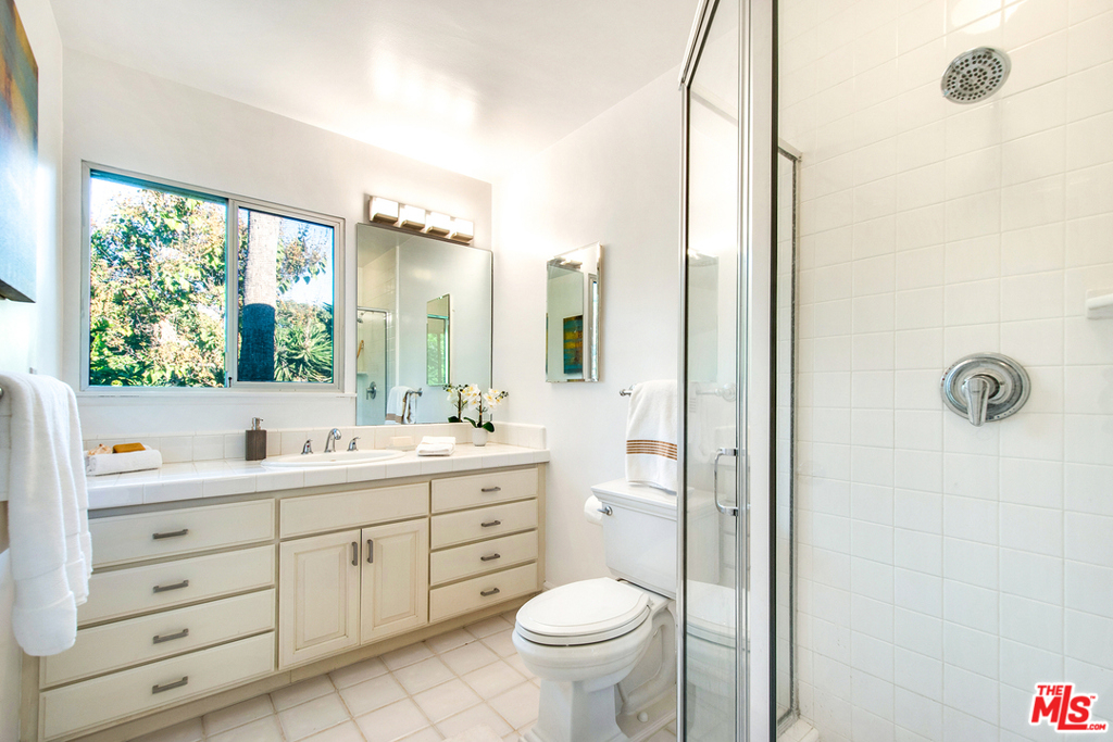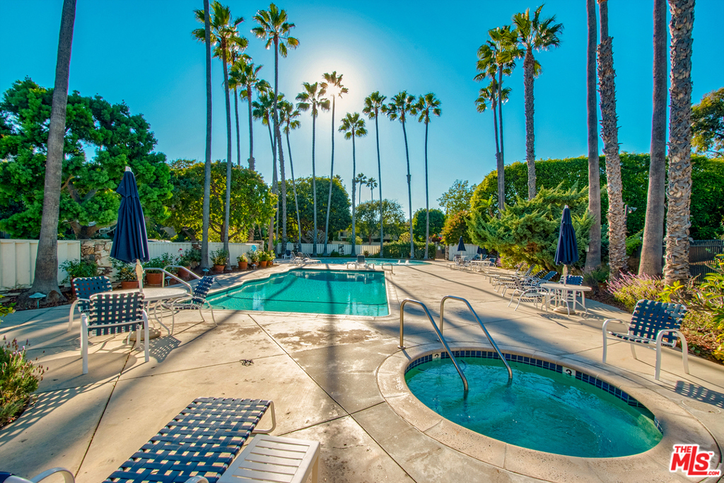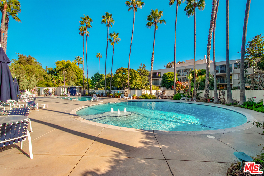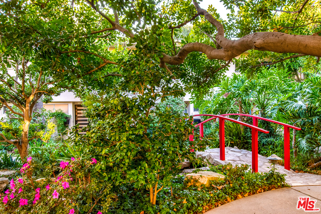 Welcome to tranquility in Brentwood! This 2 bed, 3 bath townhouse-style home is a private oasis. Meander along the winding path, beside the waterfall koi pond to the entrance of this light and bright mid-century modern abode. The space features an open floor-plan, wood burning fireplace, wide-plank flooring, and an oversized balcony. The kitchen includes recessed lighting and a breakfast bar. Upstairs, both bedrooms have incredible treetop views. The master bedroom has a serene balcony, dual sinks and a soaking tub/shower. The guest bedroom has custom cabinetry and fold out desks. Outdoors, enjoy two sparkling pools, hot tub, shower, private changing rooms and more, all surrounded by palm trees. An expansive grassy area boasts a community BBQ, dog friendly space and areas for lovely walks amongst the woods. This complex has ample guest parking and personal storage spaces. Moments from Brentwood Village, San Vicente shops and freeway access. Come experience this resort-style home.