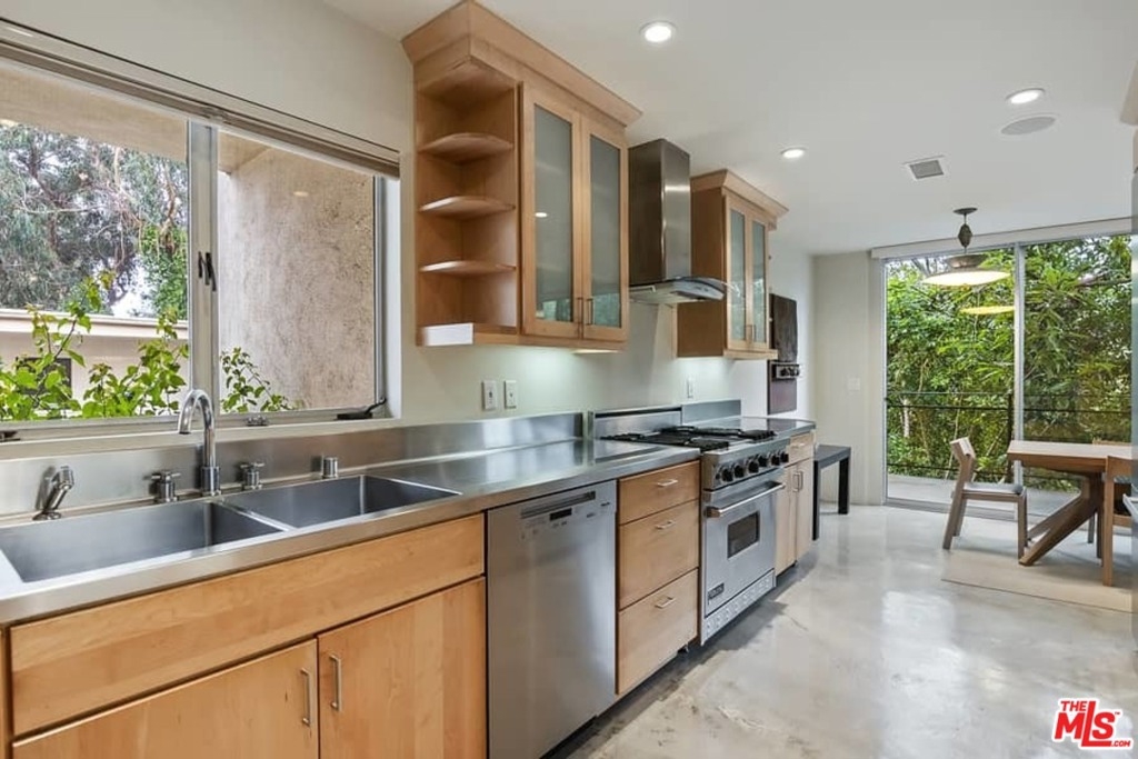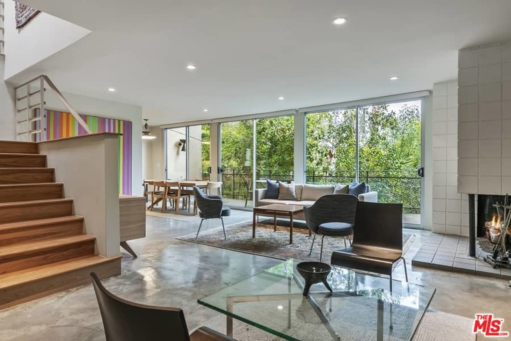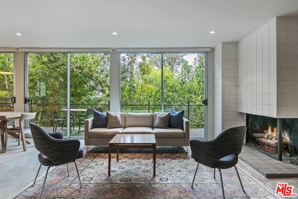 2-sty, spacious airy rear corner Mid-Century Modern! Exceptional large private patio + tree views from both levels. Heart of Brentwood Village! One of only two 3-bdrms in 1-of-a-kind resort-style 5-acre complex. Aesthetic of renown Palm Springs design movement. Iconic LA landmark living environment Brentwood Sunset boasts timeless 60s Era/retro style. Uncommon find. Feels like SFR W/so much outdoor acreage/space+vistas/+only 1 common wall. Lushly landscaped/gated complex: quintessential California playground/2 full sun swimming pools/dog park/paths+gardens. Previous to current owner, this matchless piece of history was owned only by the building architects family+heirs. Tasteful/thoughtful upgrades preserve original simplicity+unspoiled allure. Massive windows/sliders on each level boast unique+mesmerizing treehouse-like views that feel like your own private forest. A delightful spot from which to enjoy nature w/easy daily Brentwood Village excursions.