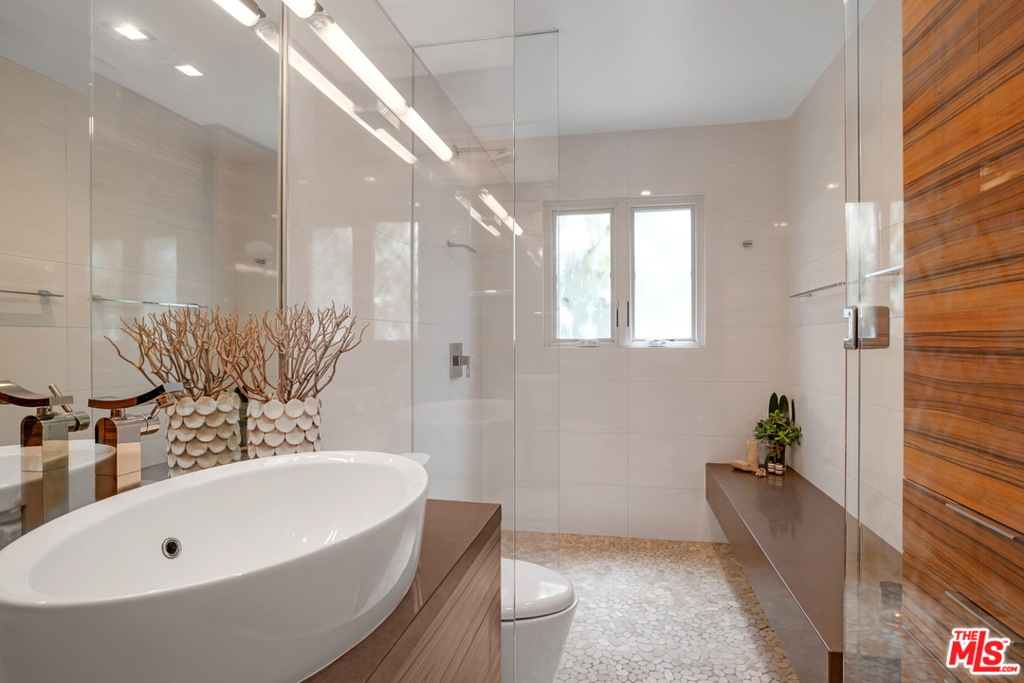 The one you have been waiting for! Beautiful top to bottom remodel with the highest quality finishes. Wide plank distressed floors, custom cabinetry, fireplace with large screen TV. State of the art kitchen with Caesar stone counters, Porcelanosa tiles throughout, custom Palladio wood designed cabinets, stainless steel appliances and breakfast area open to a versatile living space. Gorgeous bath with large spa-style shower. Relax on your private balcony with view of tree-tops and gardens. Gated resort-style living amid sprawling grounds. The unit even has an electric car charger in its private, covered parking space. Amenities include heated pool & spa, large private dog park and grassy picnic area, extra deeded storage, ample guest parking. Located seconds from Barrington Village, great restaurants, shops, parks and minutes to beach & 405.