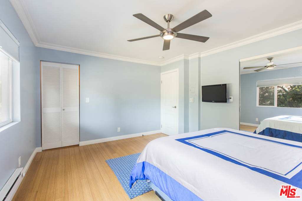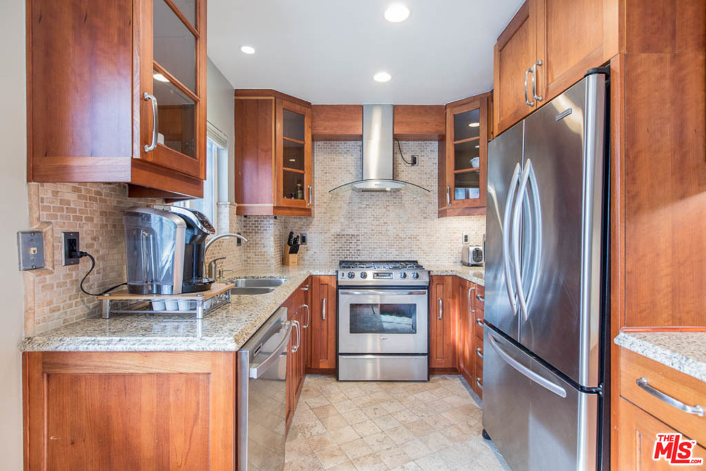 Luxury urban 1-Bedroom condo in the meticulously maintained, highly coveted Brentwood Villas. Lively location easily walkable to downtown Brentwood on San Vicente Blvd. with Whole Foods, shops, amazing restaurants & cafes. Sunlit interior features granite and travertine kitchen with stainless appliances, custom cabinets, breakfast bar, eco-friendly bamboo flooring throughout, full size washer/dryer in unit, and a beautifully remodeled bath. Unwind in the spa-like bath featuring marble vanity, fogless LED mirror, extra deep soaking tub with glass enclosed shower. New cordless honeycomb shades in living and dining room with black-outs in the bedroom. Security entry building is pet friendly and offers a well-equipped gym, pool, sauna and sun deck. Secure gated parking. Prime location for accessing Beverly Hills/Century City, Santa Monica, Sawtelle Center, DTBrentwood, and the beaches all within a 15 minute drive. 2 minutes to hop onto the 405 fwy, just 15-20 minutes to LAX. Welcome Home