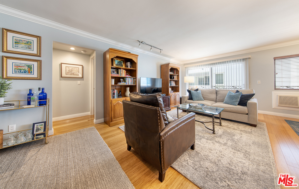 Resort-style living in the heart of Brentwood! This unit features an open floor plan, one large master suite, modern kitchen with stone countertops, Bamboo flooring, crown molding, bonus space/office nook, tons of storage throughout, and a private balcony. Building was completely remodeled in 2006! Amenities include pool, sauna, exercise room (renovated in 2020), controlled entry, and security cameras. 2 car tandem parking. Best of all, this building is walking distance to many shops, cafes, restaurants, bars and markets.