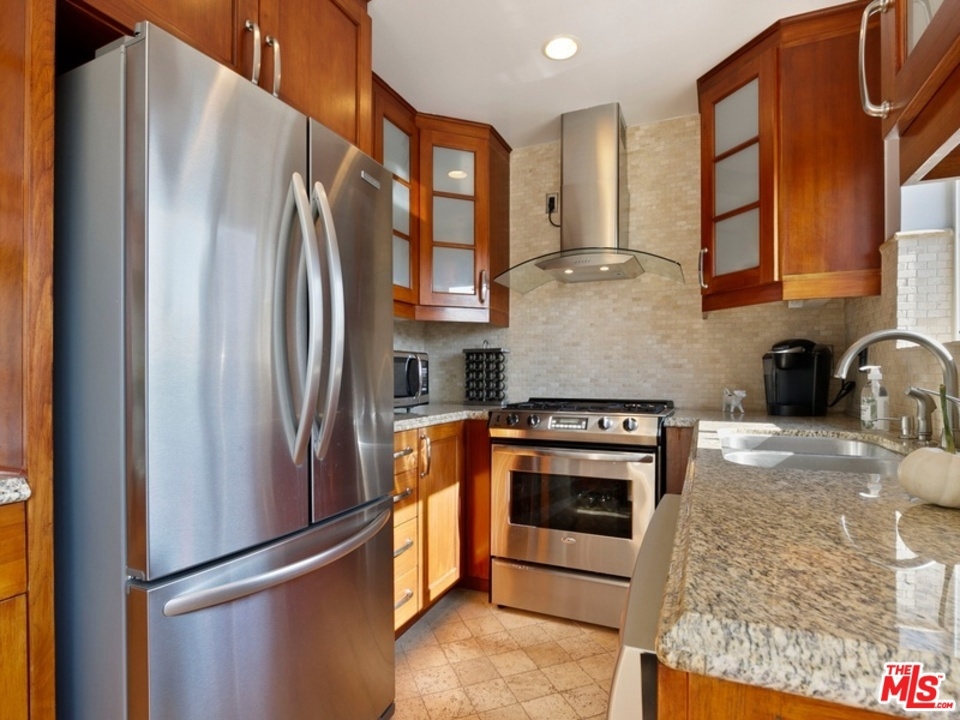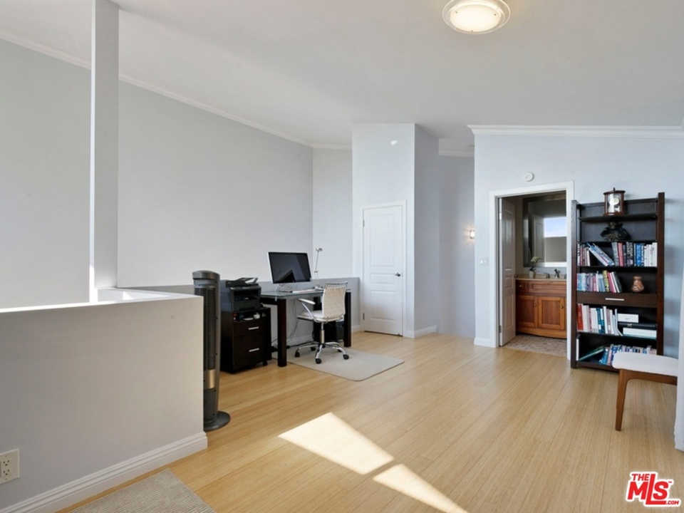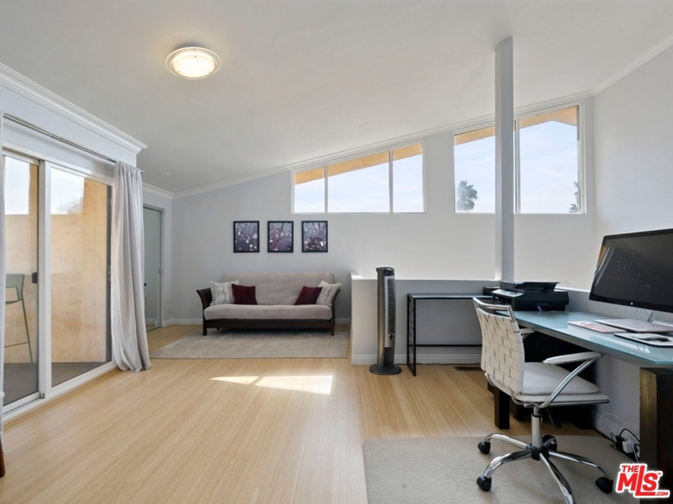 Contemporary Mediterranean Penthouse in highly sought out Brentwood neighborhood. Light streams in this vaulted ceiling west facing gorgeous loft style condo. High-end finishes throughout with Bamboo flooring, stainless steel appliances, cherry wood kitchen cabinetry and decorative Travertine in both kitchen and baths for a true luxurious experience. Other features included in this move in ready home are stackable washer and dryer, only one shared wall, walk-in closet and extra storage, two large balconies, gated and assigned parking for two. Staying at home is easy with fitness center, pool and sauna. Minutes to the best restaurants, shopping and Whole Foods. Close to UCLA and FWYS. Absolute gem, don't miss out.