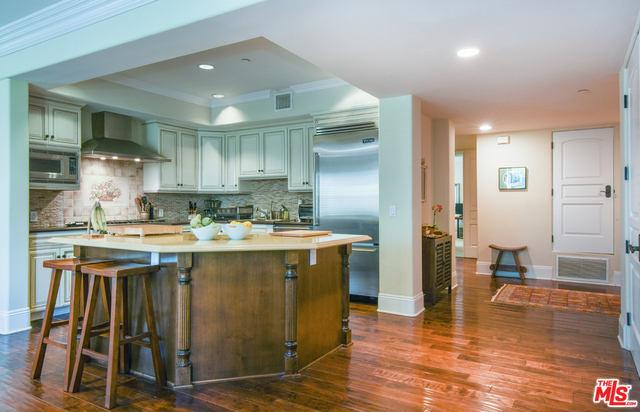Open plan elegance, set in one of the most beautiful buildings in prime Brentwood. Here, flowing spaces illuminated by natural light make entertaining easy - and staying home a pleasure to look forward to.Hardwood floors, oversized crown molding and a gas fireplace set the welcoming tone, while double glass doors in the living room open to the patio. The open gourmet kitchen, appointed with Viking appliances, is ready for everything from memorable gatherings to easy breakfasts. Three bedrooms are highlighted by a luxurious master retreat with walk-in closet and separate tub and glass-walled shower. Guest bedrooms share a bath. This pet-friendly building includes a fitness room and gated two-car parking. Your private world is moments away from San Vicente shops, markets, restaurants, and the very best of Brentwood.