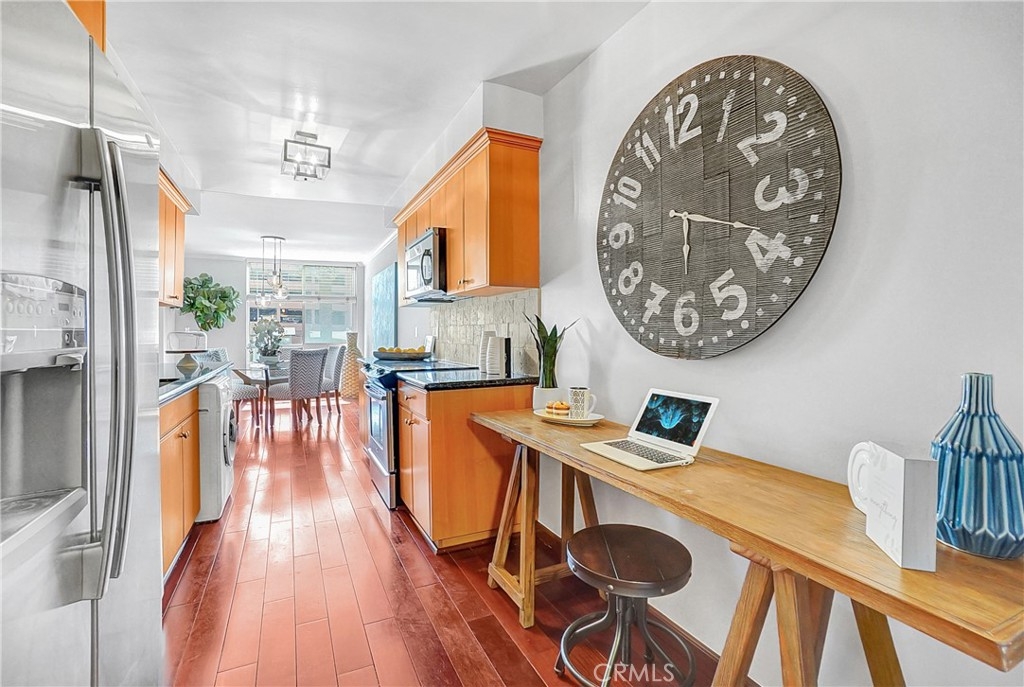 Welcome home to a beautiful Brentwood condo in the heart of it all! This bright and spacious home keeps closing to UCLA, Westwood, the Getty Museum, Santa Monica Beach, the hottest part of San Vicente Blvd with great restaurants, boutique stores and so much more. This is one of the few front-facing units that offers large windows providing continual natural light throughout the day on a safe quiet tree-lined street. You’ll enter into a formal foyer prior to turning the corner to a warm and inviting large living area with a fireplace and a custom built-in bar. The floor plan is great for entertaining as you can enjoy your friends and family from either the living room or the dining room with the kitchen just a peek around the corner. This well-maintained home provides hardwood floors throughout, stainless steel appliances, quartz countertops, and an abundance of storage. Retreat into your bedroom large enough for any king-size bed and a home office if needed. Or come home and relax on your private balcony and enjoy cool California nights as the sunsets. There are so many wonderful details that you will have to just come to see it for yourself.