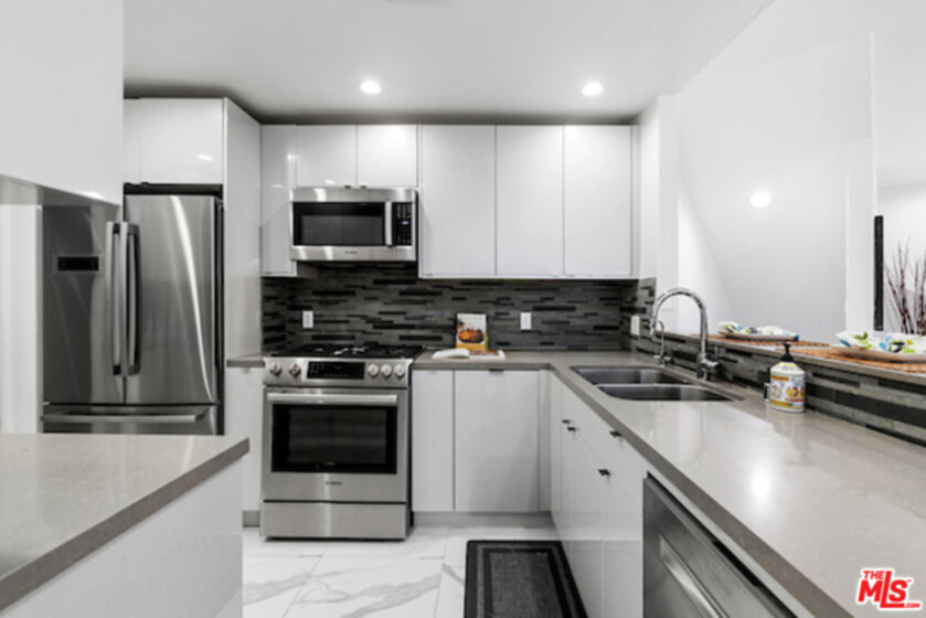 Experience the Essence of Brentwood Living! Beautifully redone tri-level townhome style condo with approx. 1600 sqft. Plus a Bonus Room perfect for a home office or gym. There is a Direct entry to a 1 car private garage + 2 car security parking. This corner unit has a spacious and open concept floor plan. Generously proportioned living spaces with lots of natural light. Wonderful use of Tile and Vanier Engineered Hardwood Floors throughout the living area. Granite fireplaces in living room and master suite. Recessed lights and built-in speakers throughout. Tastefully remodeled open kitchen with Bosch stainless steel appliances, Caesarstone counter tops and breakfast bar, lots of cupboard space and pantry. Good sized bedrooms with en suite bathrooms. Close proximity to UCLA, shops, markets, restaurants and freeway.
