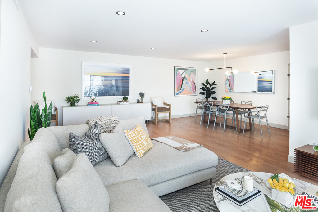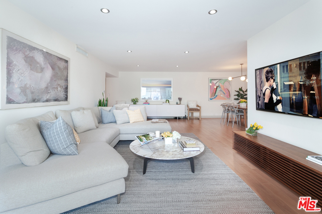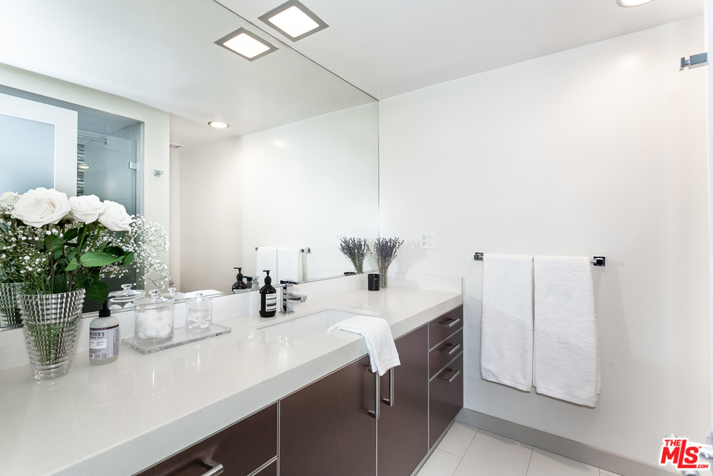 Welcome to the ultimate in urban living - located on a quiet cul-de-sac street in the heart of Brentwood. This top floor condo offers an open floor plan in the main, living and dining areas with oversized sliding glass doors that open onto a covered balcony. The chefs kitchen is complete with stainless steel appliances, quartz countertops, breakfast bar and custom cabinetry. The generously sized principle suite features a designated vanity area, two closets and en-suite bathroom with dual sinks. This stunning unit also includes oversized second bedroom, in-unit laundry, and recessed lighting throughout. The unit comes with 2 side-by-side parking spaces. Recently restored in 2015, building amenities include controlled access, private courtyard with pool, fitness center, and secure parking. Steps from all Brentwood has to offer.