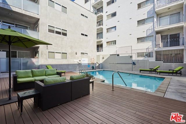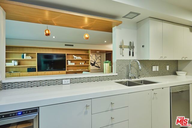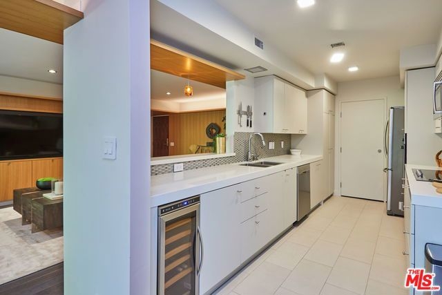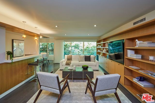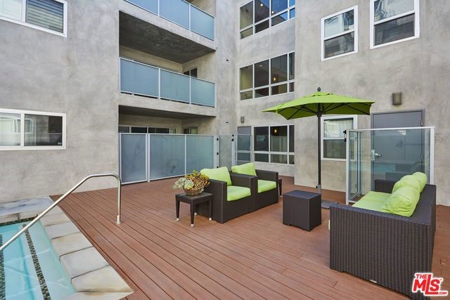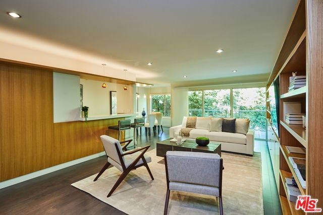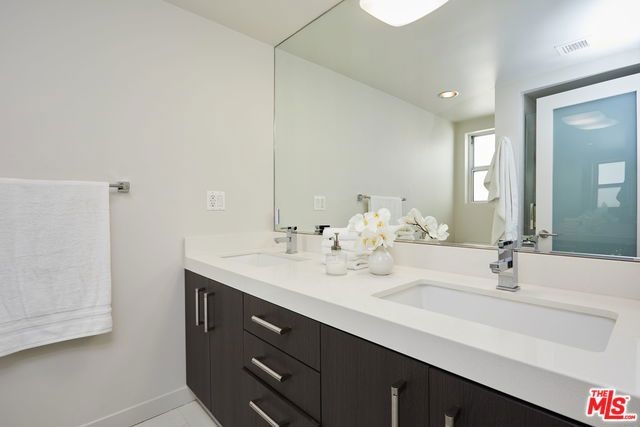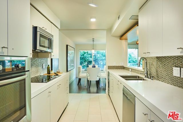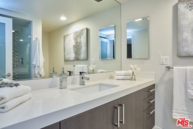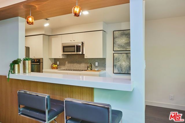 Stunning, contemporary 2BR/2BA top floor condo located in a highly desirable building in the heart of Brentwood. Don't miss this very private, quiet top-floor corner unit with only one common wall. Living and dining areas offer an open floor plan with floor to ceiling sliding glass doors leading to a spacious covered balcony. Features include recessed lighting, wood laminate flooring, built-ins and electric blinds. Modern and clean cook's kitchen complete with stainless appliances, quartz counter tops, glass tile back splash, double stainless-steel sink & breakfast bar. Generous Master Suite with two closets, vanity area and en-suite bathroom. Laundry in unit. Side by side parking. Building includes attractive courtyard area with pool and a fitness center. The ultimate in urban living as close to all the shops and restaurants on San Vicente Blvd. Don't miss this gem.