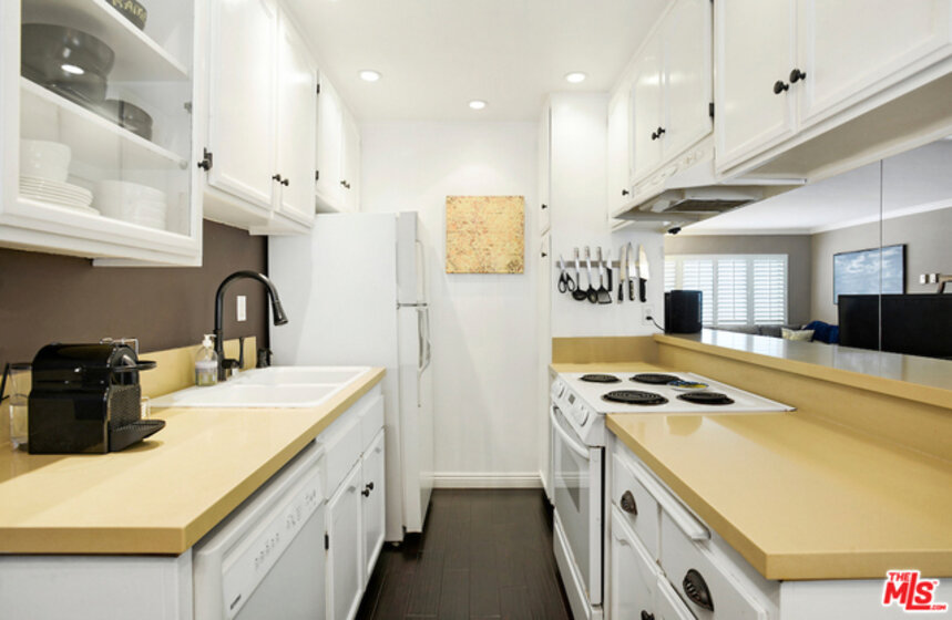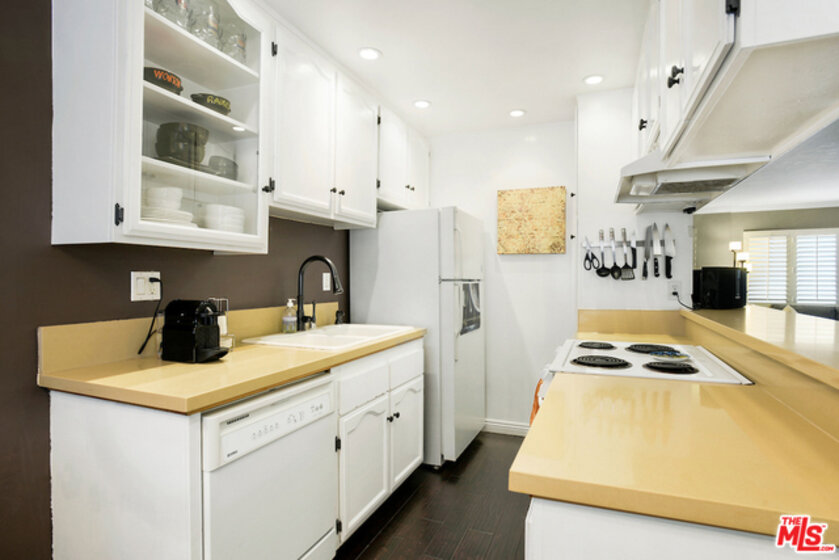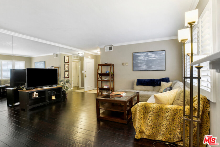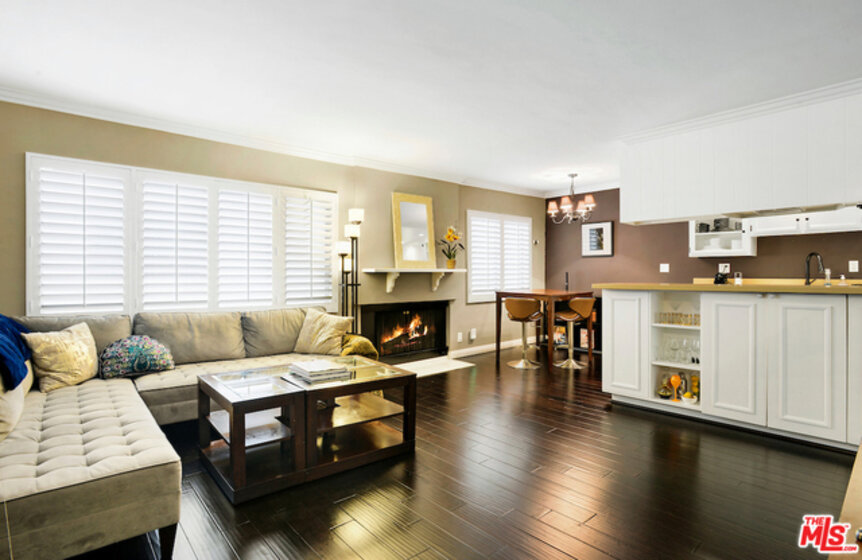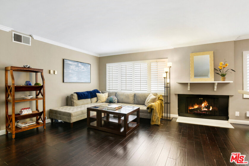 Modern Condo in Prime Brentwood Location. The Chenault Towers Condominiums is located in a quiet cul-de-sac. It has controlled access with an elevator that will take you to the 4th floor to enjoy the spacious living area with gas fireplace. There are plantation shutters and crown moldings throughout, updated kitchen with quartz countertops and recessed lights, central heat and ac, beautiful hardwood floors throughout, one car security parking, large sun filled community sundeck. Homeowners dues include water and eq insurance. This is so close to Brentwood's finest shops , restaurants , markets and the village.