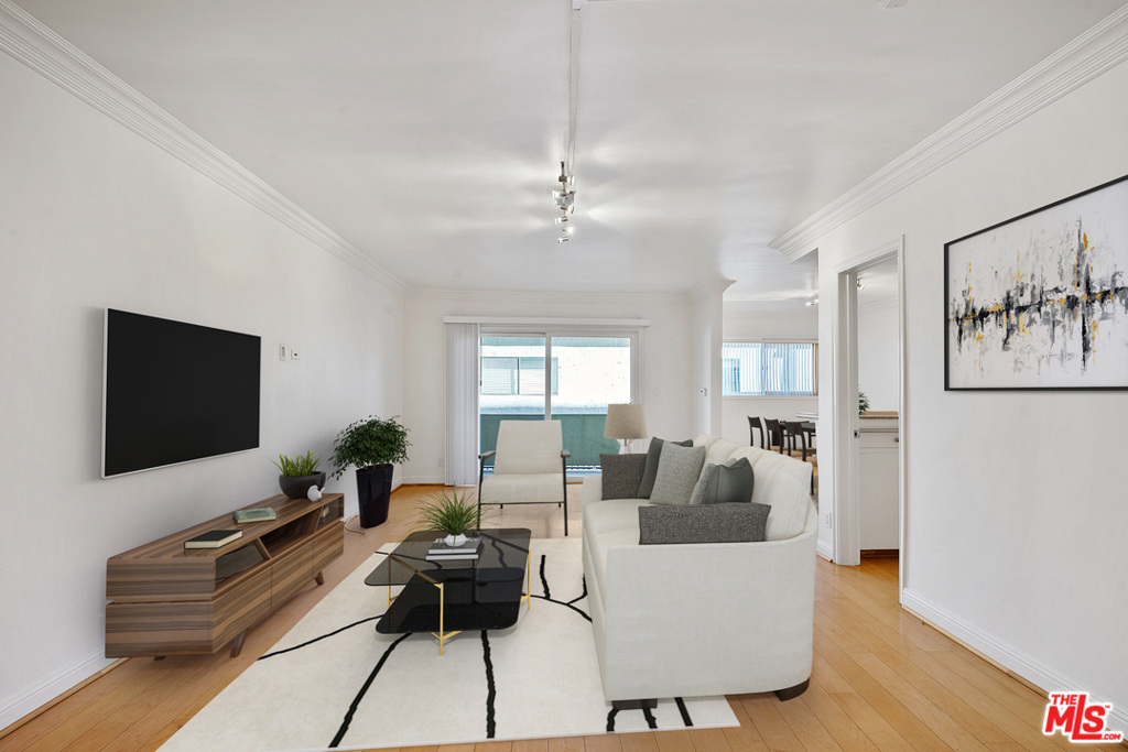 Welcome to prime Brentwood living in the highly coveted Chenault Villas! This spacious 1 bed/1 bath unit showcases a single-level open floorplan. Its convenient layout features a bright living room, large private balcony, open dining area, built-in bar, and walk-in pantry. The updated kitchen shows granite counter tops and stainless steel appliances. Enjoy the luxury of a roomy master bedroom with multiple closets including a large walk-in closet, as well as a fully updated ensuite bathroom. Additionally the unit boasts maple flooring and crown molding throughout. Chenault Villas is in one of Brentwood's most desirable locations and features an exquisite common area with a sparkling pool and sun deck, a community gym and laundry room, secured entry, and gated subterranean parking with five additional guest parking spaces. Just north of San Vicente, this unit is close to restaurants, shopping, cafs, parks, the beach, and the Expo Line for easy access to all the Westside has to offer.