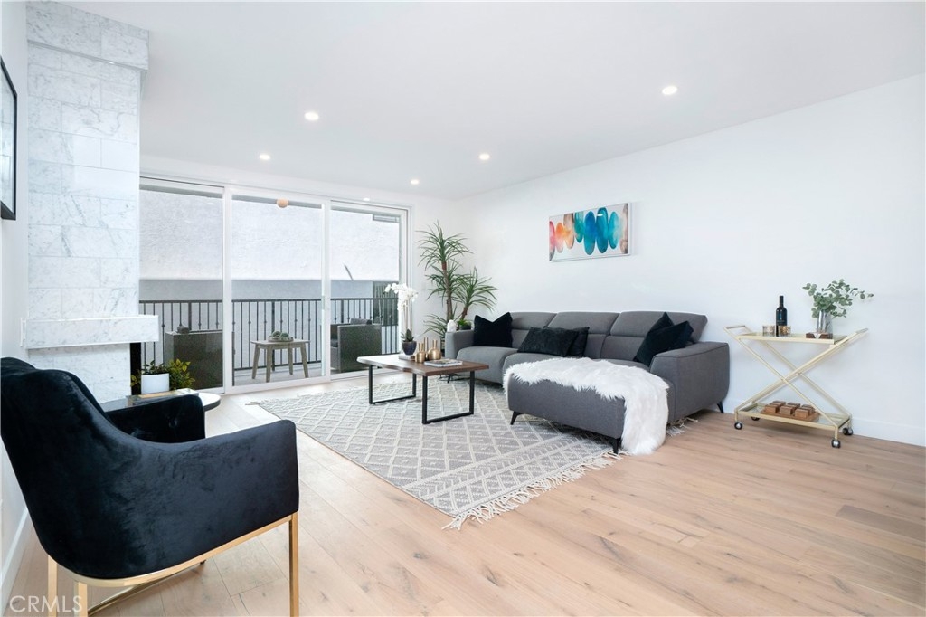 Beautifully designed 2 bed, 2.5 bath, condo in prime Brentwood location and in the Kenter School District. Newly renovated with hardwood floors, new bathrooms and recessed lighting. Open floor plan with a spacious living and dining area with a gas fireplace, opening out to a large balcony which is ideal for entertaining. The remodeled kitchen has all new cabinetry, quartz countertops, and stainless-steel appliances including dishwasher, stove and microwave hood. Community storage and parking in the garage with HOA covering EQ insurance, water, and gas. Just around the corner from Whole Foods, Starbucks, Brentwood Farmers Market, and all the restaurants/shops on San Vicente.
