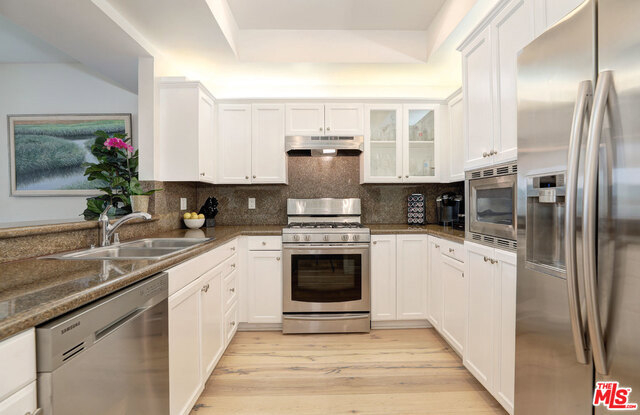 Beautifully updated 3BR/2.5BA corner unit in prime Brentwood! Spacious & quiet rear corner unit with only one shared wall and over 1,700sq.ft. on a single level. Open floor-plan & excellent flow between living & dining spaces including a graciously-proportioned family room w/ cozy fireplace & sliding glass doors that open to a private outdoor patio. Updated kitchen with newer S.S. appliances, granite countertops, ample cabinet space & breakfast bar. 3 sizable light-drenched bedrooms w/ recessed lighting & new hardwood floors throughout. Master retreat features a large walk-in closet w/ ample built-ins & en-suite bathroom w/ dual sinks, large soaking tub & frameless glass shower. Excellent location, just moments from Brentwood shopping/dining, the Country Mart, S.M. Beach & convenient 10/405 FWY access. In-unit Laundry, Central A/C, Modern & well-maintained building w/ secure access & gated 2-car parking with additional guest parking. Welcome Home!