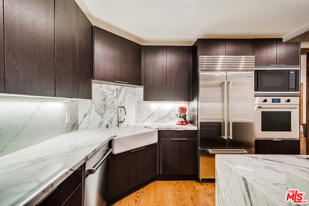 UNHEARD OF PRICE REDUCTION -Now Vacant - Move-In Ready. Take advantage of this incredible value! This stunning unit offers a double door entry, Italian marble throughout, spacious living-dining room area w/high ceilings, decorative fireplace & sliding glass doors opening to patio. Sunny & bright Chef's dine-in kitchen is equipped with a gas cook-top, Sub-zero/Wolf smart appliances, smart LG washer/dryer, breakfast bar & patio access for al fresco dining. Over-sized bedroom suite is flooded with light, decorative fireplace, large window plus sliding glass door to 2nd patio, plus ample closet space. The luxurious bathroom is complete with Italian marble floors & counter, double sinks, soaking tub & waterfall shower. Multiple possibilities for home office spaces. Other features include side by side parking & huge private storage room; Nest thermostat, Oak hardwood floors, and half bath off entry. Building amenities offer many secured guest parking spaces, pool/spa & open-air atrium. Close to all restaurants and retail!