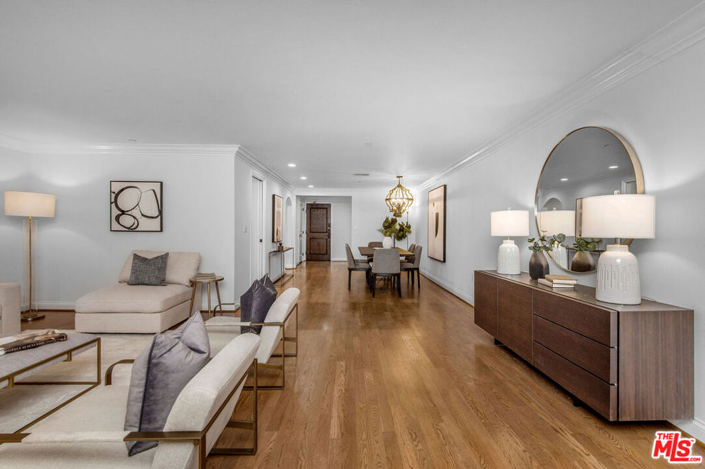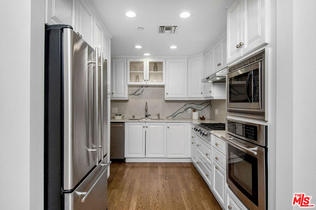 Great opportunity to own a re-imagined luxurious condo in the heart of Brentwood. Situated in one of Brentwood's best buildings, this inviting unit with only one shared wall provides the rare ability for true indoor/outdoor living with patio space that has the feel of a small yard (complete with fruit trees and herbs). The unit has a large living room w/ fireplace, updated chefs kitchen w/ custom cabinetry and quartz countertops, large master suite with custom walk-in closet and master bath with dual sinks and separate tub and shower. The generously sized second bedroom has ensuite bath and both bedrooms access the light and bright patio area. Features hardwood floors throughout, plantation shutters, S x S laundry and an office with built-in cabinets. Building amenities include weekday concierge, fitness center, conference room, rooftop deck, secure storage, S x S parking and 16 guest spots. Enjoy all of this while being near Brentwood's popular shops and restaurants!