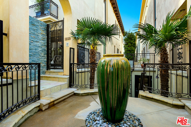 Discover this one-of-a-kind, exquisite free-standing townhome with no shared walls. Luxury at its finest! Located on a peaceful tree-lined street in an A+ Brentwood loc. This pristine, gated, light-filled home has an expansive flr plan w/4 en-suite bedrooms & a downstairs office. Dramatic 10' ceilings complement the formal living & dining rms which are adorned w/custom raw silk drapes & Hunter Douglas shades. From the living rm, French doors lead to a large private outdoor patio w/lush landscaping, ideal for seamless indoor/outdoor living. Designer gourmet kitchen incl Thermador stainless steel appliances, Italian designer cabinets, quartz countertops w/adj family rm. Elegant Master suite w/fireplace offers 2 separate walk-in closets; Master bath w/Carrara marble flrs, free-standing bathtub, sep rain shower & double sinks. Special features incl dual tankless water heaters, 2-zone A/C, Sonos system, attached 2-car garage w/direct entry. Within close proximity to upscale shopping/dining.