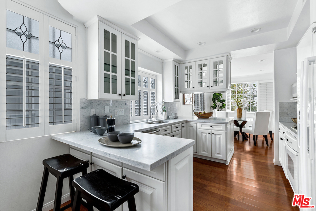Welcome home to this stunning condo in the heart of Brentwood! Located just blocks from San Vicente, this gorgeous 3 bedroom condo features an incredible, expansive open floor plan with endless natural light. Each room connects beautifully to the outdoors with multiple front-facing balconies surrounded by mature sycamore trees and lush greenery. Thoughtfully designed with hardwood floors throughout and a gourmet kitchen featuring beautiful honed Carrara Marble countertops with a gorgeous marble tile backsplash. The wide-open great room features, warm hardwood floors, crown molding, and a fireplace lined with wainscoting and designer tile. The spacious primary suite features a walk-in closet, a luxurious bathroom with dual sinks, and a beautifully designed large shower with Carrara marble and subway tile. Additional features include; in-unit laundry, spa, two parking spaces, and additional guest spots. Around the corner from all the best shops and restaurants Brentwood has to offer; Whole Foods, Starbucks, Sugarfish, Toscana, Jon and Vinny's, Katsuya, Pizzana, AOC and more!!