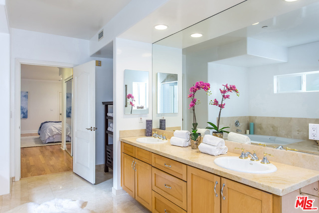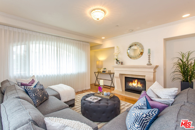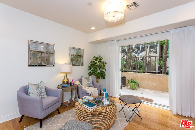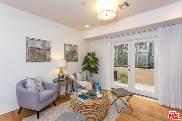 Light and bright single story 2 bedrooms, 2.5 bath condominium on the 1st floor, raised above street level, in the prime area of Brentwood. This unit is very spacious and just blocks from all of Brentwood's top restaurants and coffee places. Upon entry, you'll see architectural details and open concept living in both the dining room and living room. French doors open to an enormous private patio perfect for entertaining. Large master suite boasts of impressive walk-in closet and master bath with walk-in shower, soaking tub and double vanity. Kitchen is an open concept as well, with stainless appliances. Hardwood floors, crown moldings, and recessed lighting enhance this beautiful space. Gated parking and controlled entry with security camera and intercom.