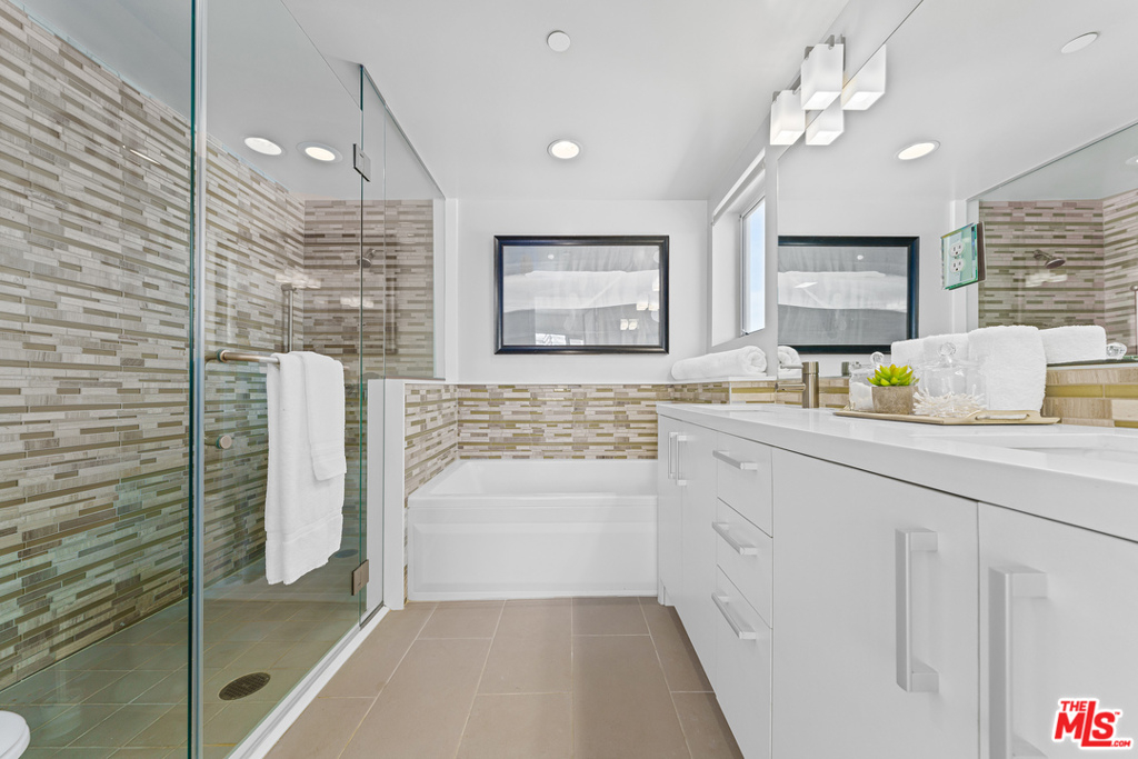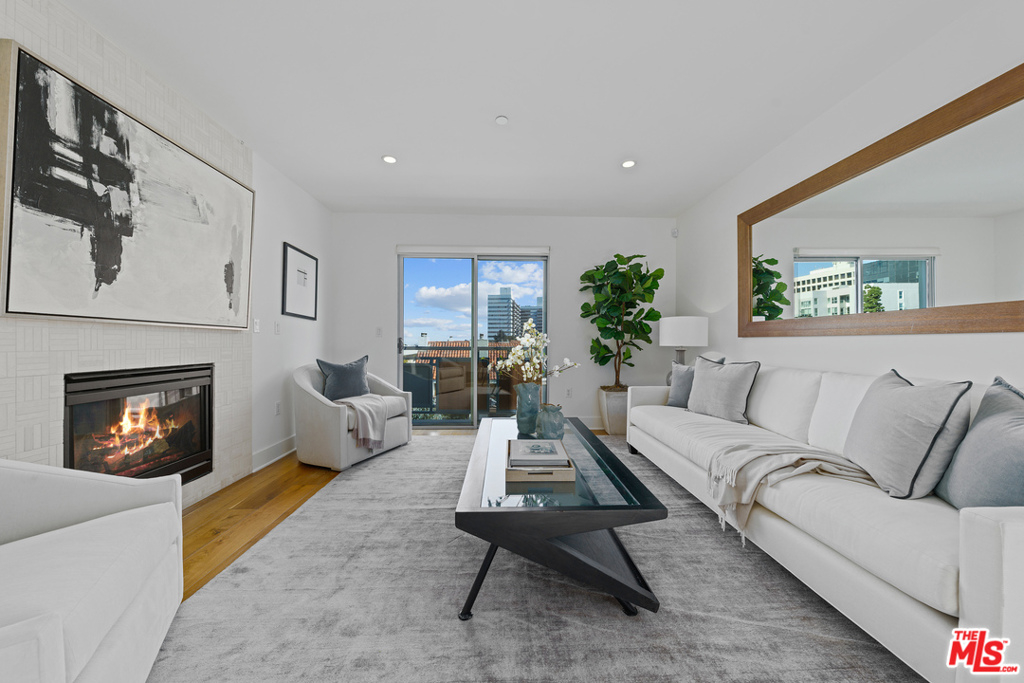 Gorgeous, modern front facing bright penthouse is the highlight of this spacious, newer construction chic home. As you enter into this single-level condo w/no common walls, in a 9 unit boutique building, you will be welcomed by an open floor plan w/French Oak wide plank wood flooring in the living & dining rooms, a gas fireplace, & private patio with beautiful views. The designer chefs kitchen features quartz stone counter tops & breakfast bar, stainless steel appliances & connects to a large dining area.Retreat into the spacious master bedroom suite w/a designer walk-in closet and 2 private patios & an en-suite bathroom w/double sinks, walk in shower & soaking tub. Additional rooms include a 2nd master bedroom with a walk in closet & en-suite bathroom and a 3rd bedroom. In-unit laundry. Building amenities include elevator, gym and rooftop sun deck w/views. 2 side by side car parking in a gated secure garage & 4gst parking spaces all located in the heart of Brentwood close to shops, cafes & markets. Incredible value!