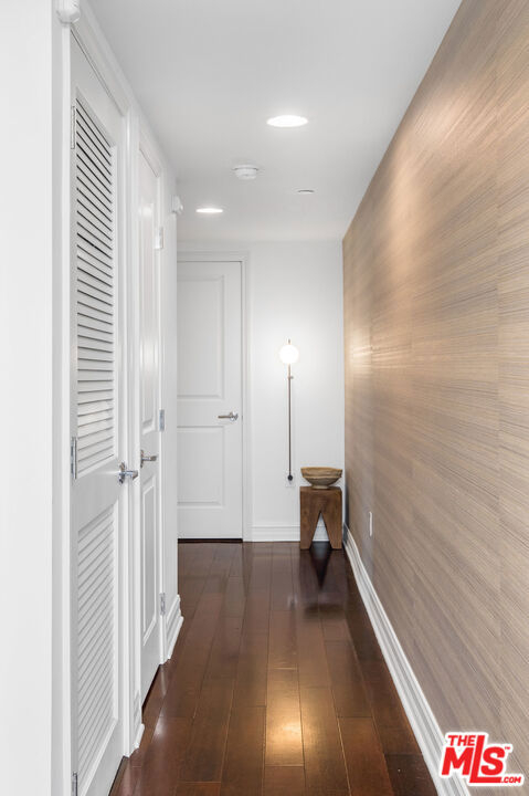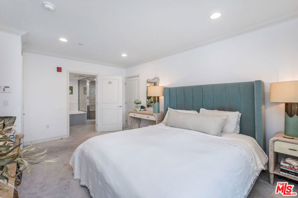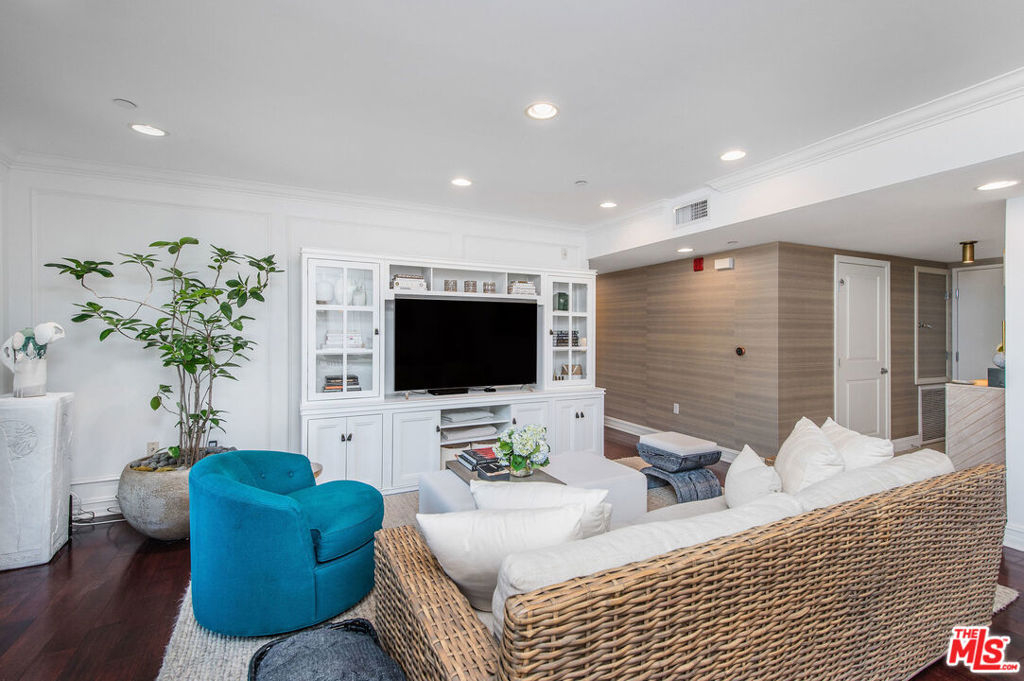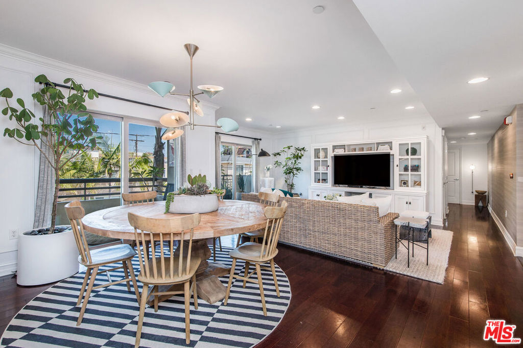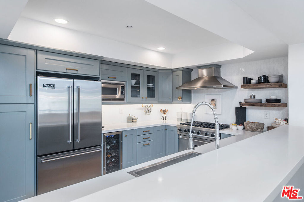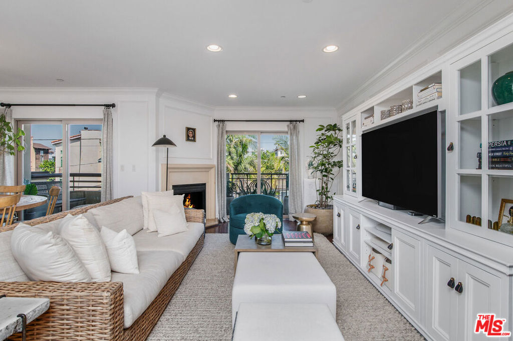 Sophisticated designer condo in prime Brentwood. Inside you'll find a chic updated design & an open layout where hardwood floors, recessed lighting, entertainment center, California shutters, brass fixtures, crown molding, wainscoting walls, and designer Voutsa Italian wallpaper flow throughout the interior. The open kitchen seamlessly flows into the living room and dining room with its abundant counter space, custom cabinetry, quartz countertops, herringbone backsplash, brass knobs, Viking stainless steel appliances with 6-speed hood vent, and wine fridge is perfect for the cooking enthusiast and entertaining. The Master-suite with custom walk-in closet, a fabulously updated bathroom with glass shower, double vanity, and soaking tub. In-unit washer and dryer and built-in organization tools throughout the home. Unit comes with two secure underground parking spaces. HOA dues that include EQ insurance, water and trash. Located close to every convenience - shopping, dining and beaches.