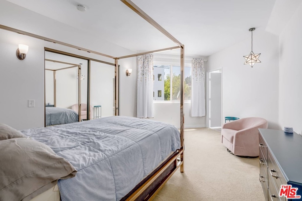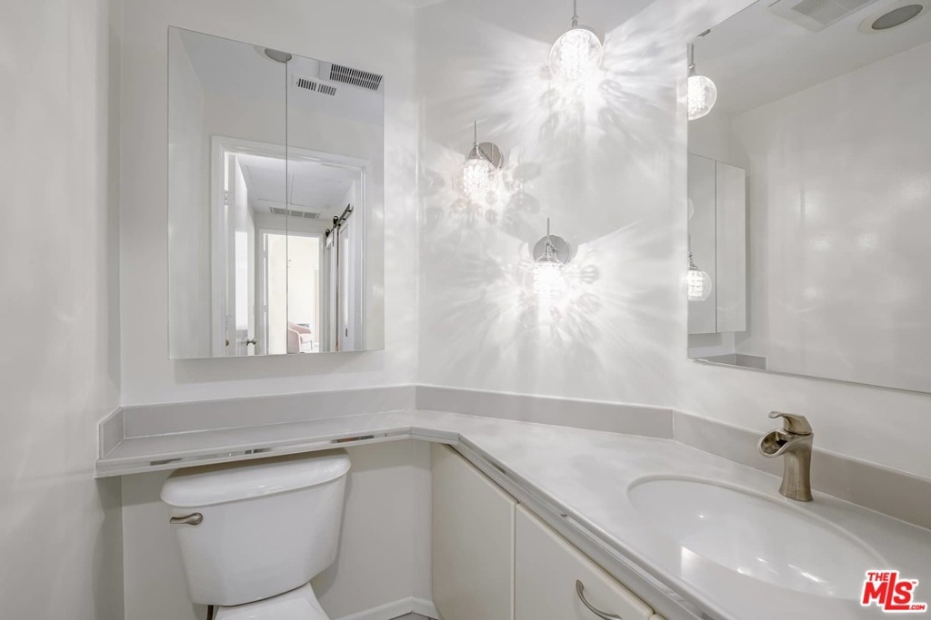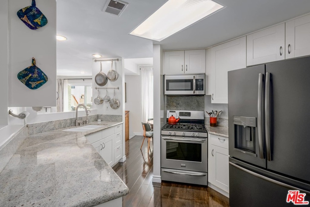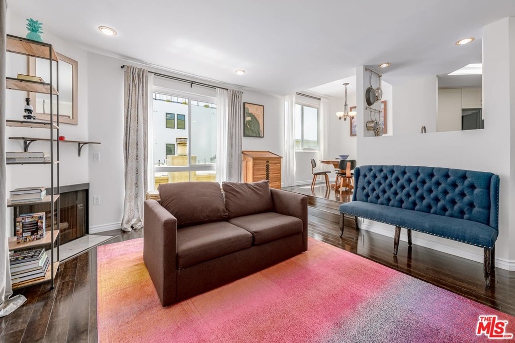Sun-filled, Brentwood, 2 beds and 2.5 baths, single level condo in a secure building. Enter a formal entry, opening to a center hall, living rm, semi-open kitchen and dining rm. The kitchen is updated with stainless steel appliances, granite countertops, and white cabinetry, while the living rm has a gas fireplace and sliders to a bright balcony. Walnut colored floors and recessed lighting are throughout the living areas. Both bedrooms are ample sized, carpeted, and have en-suite baths. In addition, there is a powder bath, in-unit laundry, and reverse osmosis water filtration system. The building provides a glass elevator to a rooftop pool, spa and BBQ area that has amazing views of Los Angeles, Santa Monica and the surrounding mountains. The gated, 2-car, tandem parking, has extra guest spots, and more storage in the garage area. This is an incredibly desirable area with convenient access to restaurants, grocery stores, shops, coffee, transportation and all that Brentwood has to offer.