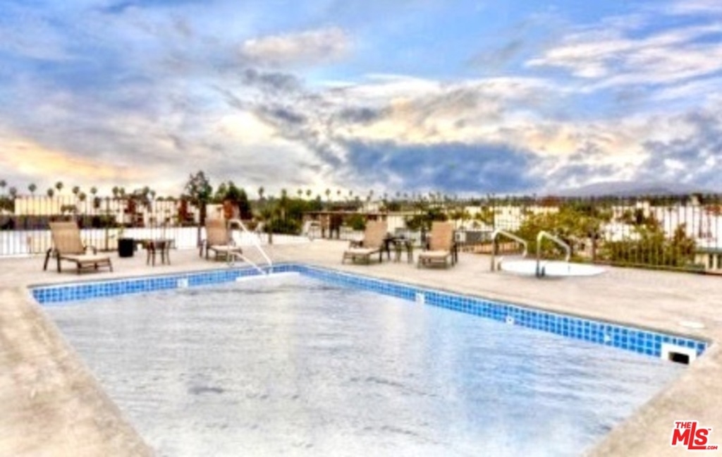 *Finally your wait for the perfect 2-bedroom Brentwood condo is over!* RARE combination- SW facing, top floor corner location, high ceilings, tons of windows AND privacy, views, inside laundry, building with tons of guest parking! An ideal layout with 2 spacious bedrooms on opposite sides with en suite bathrooms + powder room. Sharing only one wall. Light filled living room with plantation shutters, high ceilings and cozy fireplace create a relaxing place to unwind. The open kitchen with stainless steel appliances, granite countertops and cherry wood cabinets is an inviting place to try that new recipe. Beautiful wood grained ceramic tile floors and recessed lighting throughout. The building is well kept with lush palm-tree filled interior courtyard and light filled lobby. Stargaze by the remarkable rooftop pool and sundeck nearby with incredible panoramic views of the mountains + city lights. 2-car parking with 120/240V electrical outlet. Huge extra storage. *Email us for video tour.*