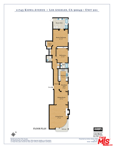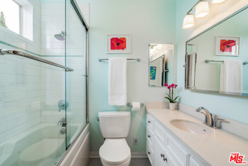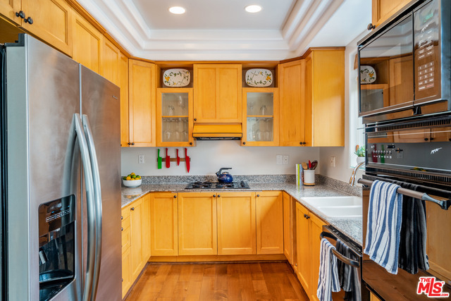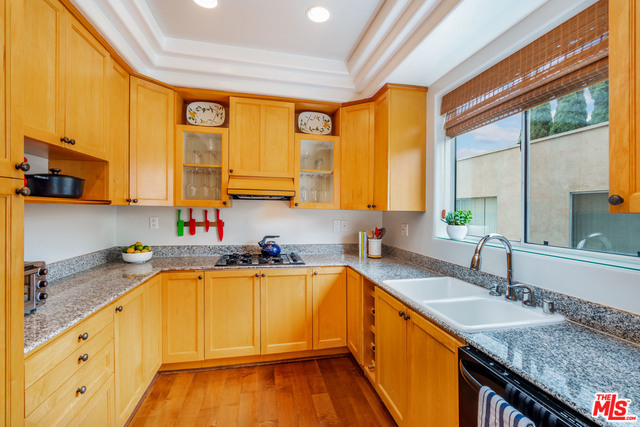 Beautifully renovated, bright and spacious two bedroom, three bath condo in the heart of Brentwood. Beautiful hardwood floors throughout the 1588 Sq Ft home. A large front-facing curved window reels in sweeping street views in a living room you want to relax in. Gorgeous wood cabinets and granite counter tops outfit the kitchen, opening to the breakfast and dining areas. The large master suite has a separate tub and shower, walk-in closet as well as an additional closet. Enjoy an in-unit washer and dryer. Two Tandem parking spots. Located in the heart of Brentwood, close to San Vicente, shops, cafes and Brentwood's Sunday farmers market.