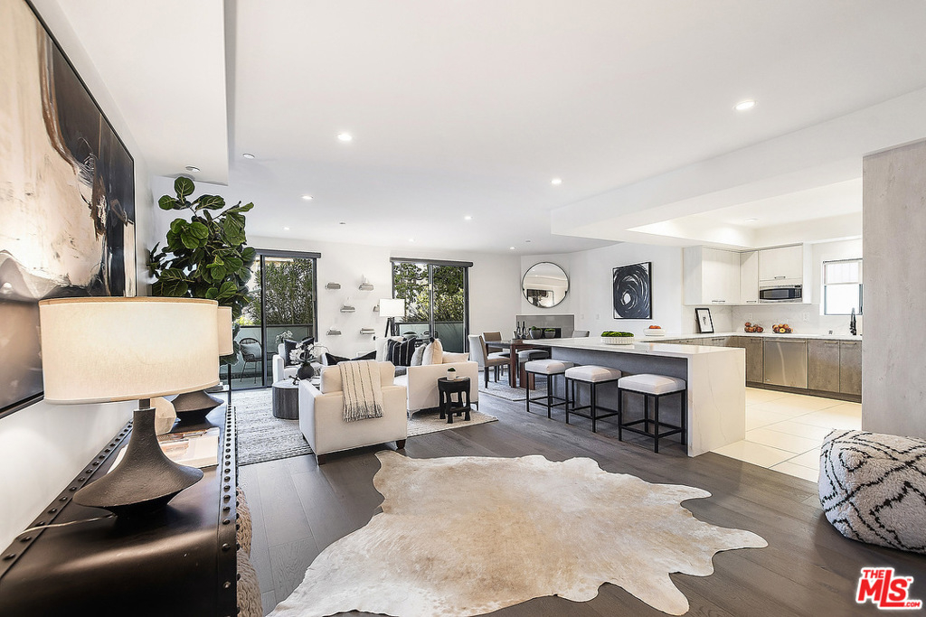 Luxurious 4-bedroom front-facing condo in an upscale building, ideally located in the heart of Brentwood. Effortlessly entertain with a spacious open floor plan featuring high ceilings, an incredible chef's kitchen, breakfast bar, fireplace, & front-facing balcony with a double set of sliding doors. The enormous kitchen is complete with stainless appliances, including a restaurant range & Italian quartz countertops/backsplash. The spacious master suite offers designer finishes: 3 closets with dual walk-ins, separate tub/shower with basalt lava stonework & high-end fixtures. Secondary bedrooms can alternate as offices, home gym, or any number of uses. Master + two of the rooms connect to an expansive side patio. Additional amenities include full-sized W/D, coat closets, pre-wired alarm system, & common area rec rm. Gated parking w/new EV/Tesla charger & guest spots. Walking distance to Whole Foods, farmers market & Brentwood Country Mart.