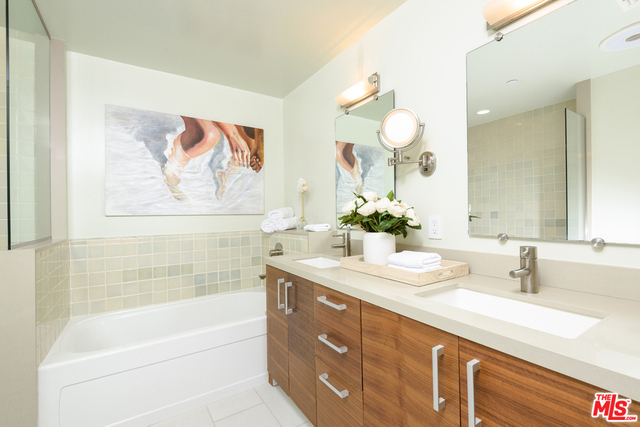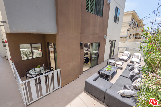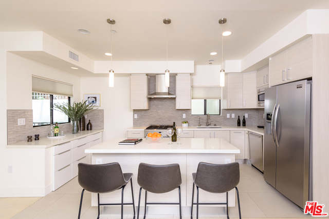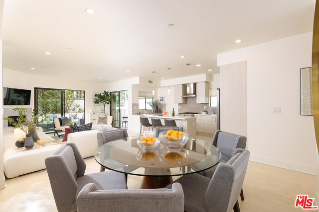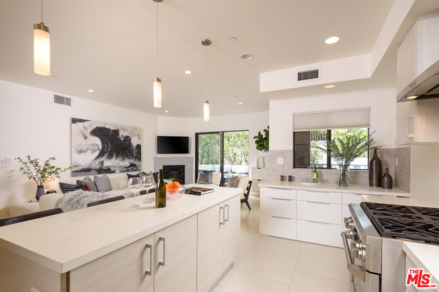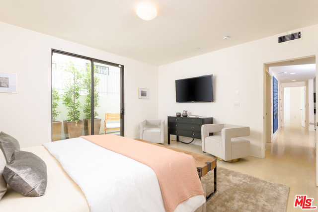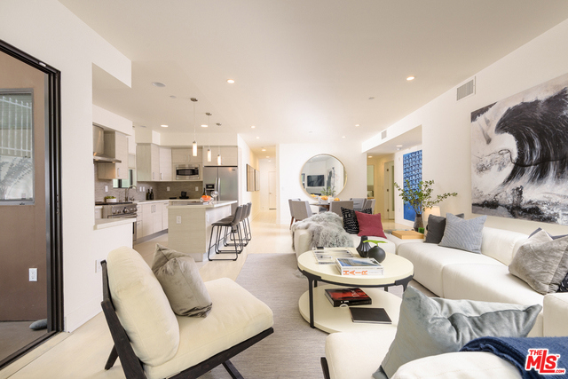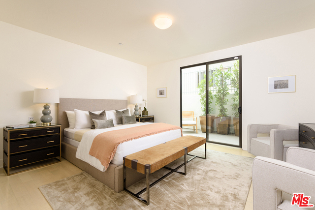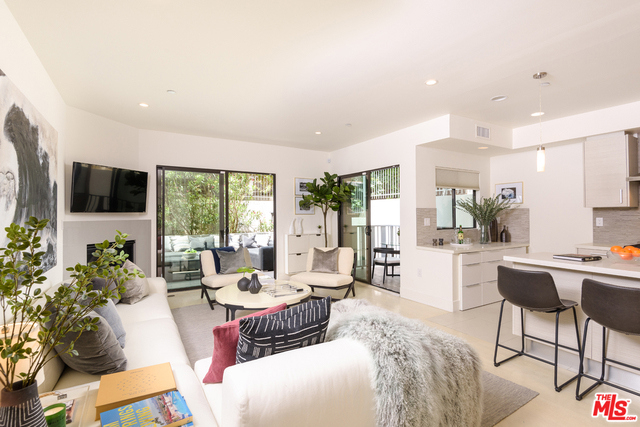 Residing in the heart of Brentwood, this special ground floor unit with an instinctive flow to a spacious patio is ideal for California living. Chic and sophisticated, this three bedroom, three bath, corner unit incorporates the living, dining, and kitchen, ideal for entertaining. The well-appointed kitchen offers Qortstone counters and marble mosaic backsplash, custom cabinets and stainless steel appliances. The spacious master suite offers a walk-in closet and a spa-like master bath, with dual sinks and a separate soaking tub and shower. A rare and idyllic setting created by the open floor plan and abundance of natural light provided by exterior patio access from every room. Located in a newer, secured building with only nine residences, this unit has convenient access from the parking garage, resembling a private residence.