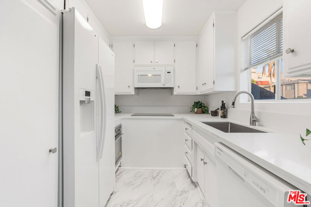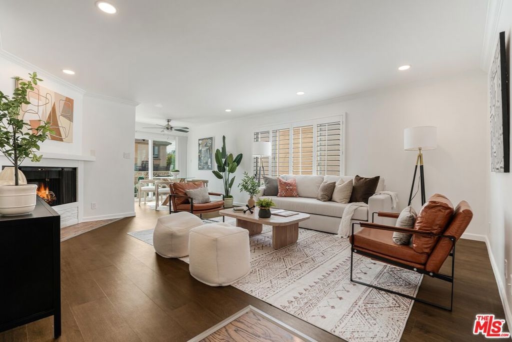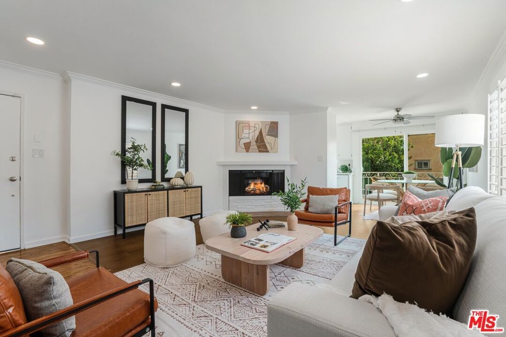 Located in the heart of Brentwood, this front-facing two-bedroom, two-bathroom condo boasts an open floor plan flooded with natural light. Step inside to a spacious living room featuring a charming fireplace, recessed lighting, laminate wood flooring, and elegant crown molding. The adjoining dining area offers easy access to the balcony, perfect for enjoying the California breeze. The recently renovated kitchen features brand-new countertops and ample of storage. The primary bedroom includes a walk-in closet, an en-suite bathroom, and abundant natural light. The second bedroom is generously sized and features in-unit washer/dryer and a large closet. Additional conveniences include a gated garage with two side-by-side parking spaces and extra storage. Unbeatable location just a short stroll to Brentwood's vibrant shops, popular restaurants, Whole Foods, Farmers Market, and more!