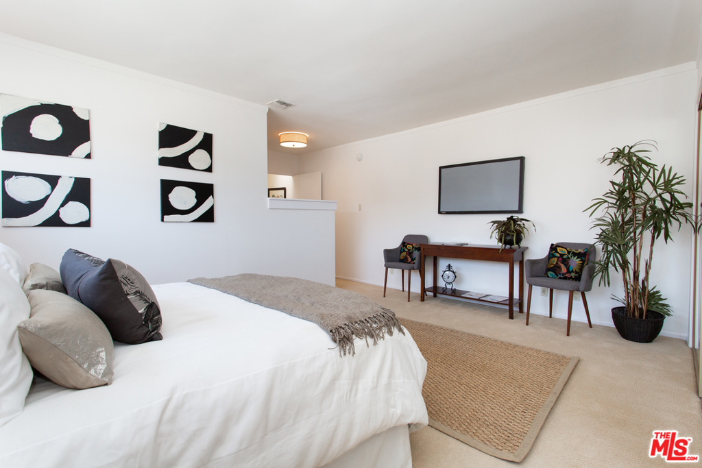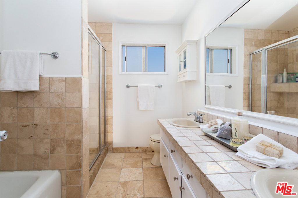 Beautiful, bright, spacious top-floor townhouse in Brentwood perfectly situated walking distance to the shops on San Vicente and Wilshire Blvd. A wonderful layout with both bedrooms upstairs and the living space down. The Master has amazing natural light, an en-suite bathroom, ample closet space, and dressing area. Bedroom number 2 boasts great light and has a private bathroom, and downstairs is complete with powder room, built-ins, fireplace, office nook, laundry hook-ups and a lovely kitchen with updates throughout. Building has undergone a major interior update and the unit comes with ample storage. This is the perfect place to call home!