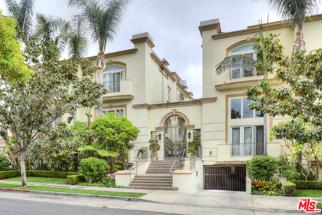 Multi level upscale home in desirable Brentwood 1/2 mile to San Vicente and the Sunday farmers market. Only 8 town homes in this stunning gated Mediterranean complex. This rare 3,100+ sqft town house is situated like a single family home with a direct access 2-car garage, private elevator from the garage to each floor, 4 bedrooms plus family room, loft, and private oversized rooftop deck. The living room enjoys soaring vaulted 20' ceilings and fireplace, open dining room with grand chandelier, and fabulous walls for art. Chefs kitchen boasts Viking stove, Subzero refrigerator, wine fridge, and center island for entertaining. Master suite has walk in closet, en suite bathroom, patio, and fireplace. Rooftop terrace is complete with city views. Sophisticated top quality living and the perfect single family home alternative in prime Brentwood.