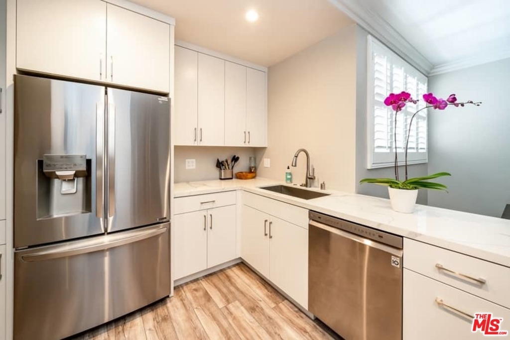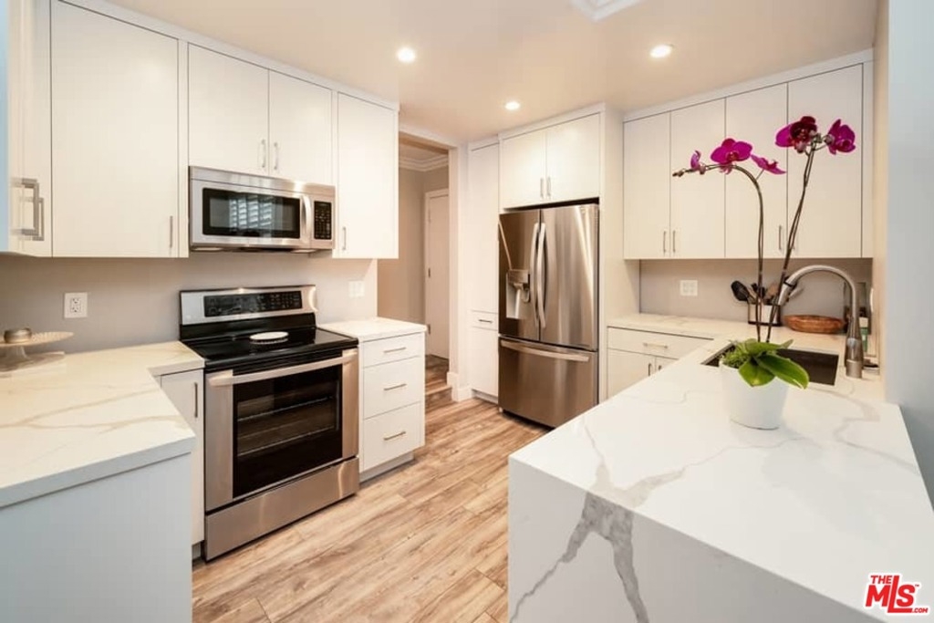 Beautiful light and bright newly remodeled two bedroom and two bath condo. New hardwood floors in the entry, living, dining room and kitchen. Spacious living area, with fireplace and a balcony to enjoy the outdoors. The kitchen is equipped with brand new Stainless Steel appliances, new cabinets and offers an abundance of storage. The closets have been upgraded to organize all your needs. The master suite has a new bathroom and a wonderful dressing area. Washer and dryer in unit. Low HOA dues with a heated pool and gated parking garage. Unit comes with one parking spot, and there is an option to rent a second space. Fantastic location within close proximity to shops and restaurants in a sought after Brentwood neighborhood!