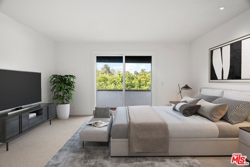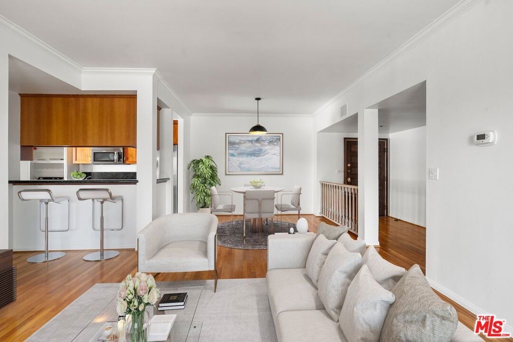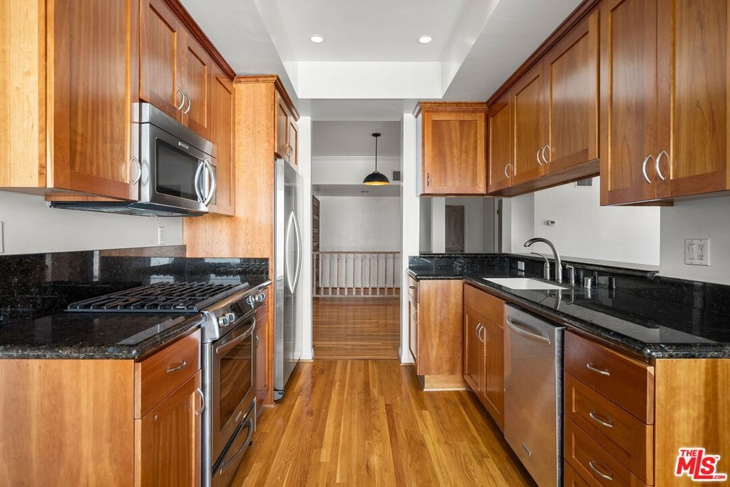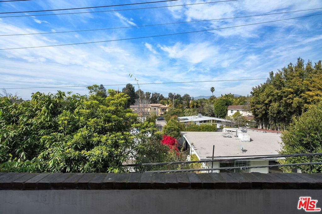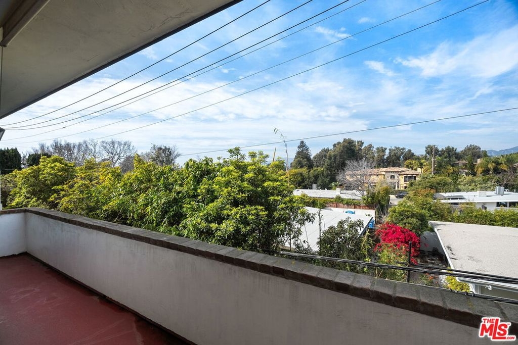 Wonderful Penthouse! Top-floor, single-level, corner unit! This beautiful 2-bedroom, 2-bath, condo is filled with natural light and lovely vistas with balcony access from nearly all rooms! Hardwood floors and central AC. Living room with fireplace looks out over treetops towards the hills! Cook's kitchen with stainless steel appliances including a gas range, well-designed cabinetry and pantry space. Generous dining area. Nice layout with bedrooms on opposite sides of the unit- each with balcony access. Primary suite enjoys views to the Getty, walk-in closet and large bath with double sinks, spa tub and separate shower. Controlled access building with assigned parking and plenty of guest spots, storage area, new elevator, and rooftop sundeck. Fantastic Brentwood location, just around the corner from tons of dining and shopping! Ready to move right in!
