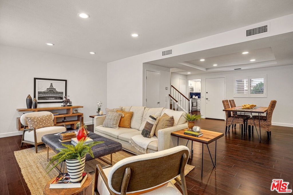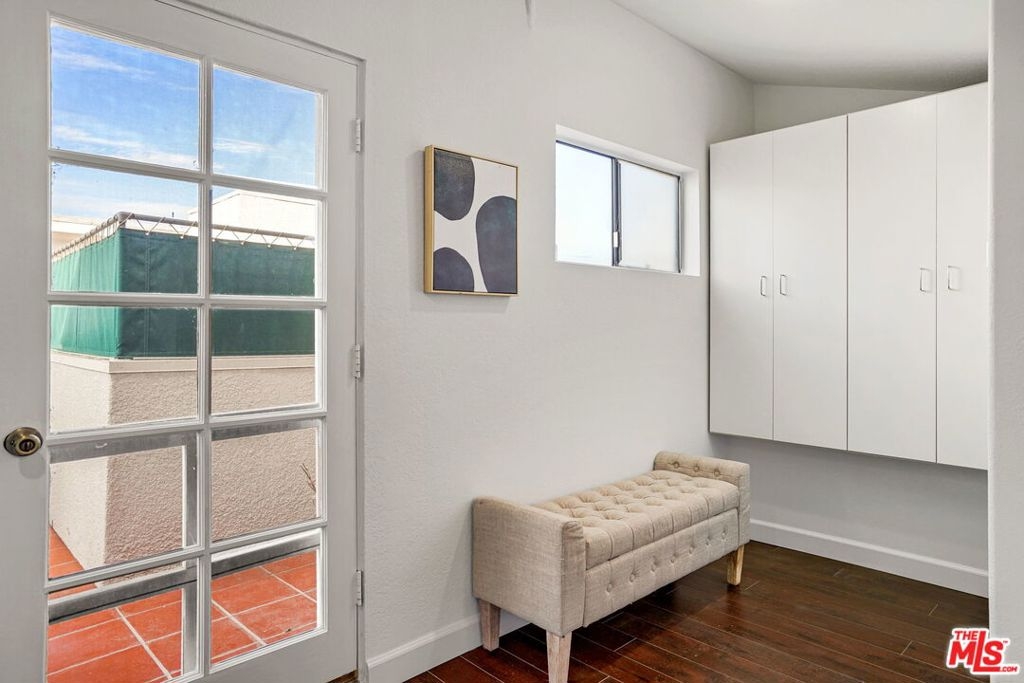 Designer updated tri-level condo with private roof deck in the heart of Brentwood. Spacious 2 bedroom + loft that can be used as a third bedroom, home office or gym. Hard wood floors throughout with rooftop deck that offers peekaboo views of the Ghetty Museum. Montana Plaza is a gated/secured building that features a pool, spa and recreation room. This amazing Brentwood location is north of San Vincente and next to Whole Foods, Katsuya, Jon & Vinnys, trendy shops and the Sunday Farmers market. Also includes central heat/air, side by side laundry in unit, custom shutters, lots of storage, recessed lighting, and crown molding throughout. Two tandem secured underground parking spots are included as well as multiple storage areas separate from the unit. It is located in the top rated Kenter Canyon school district.