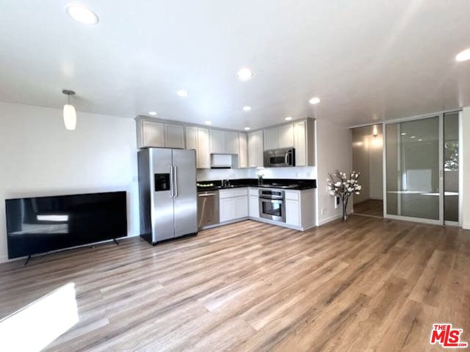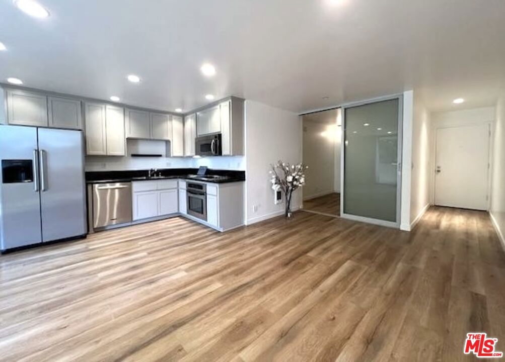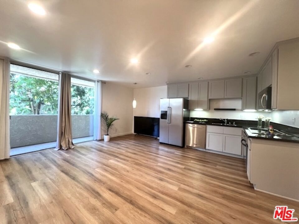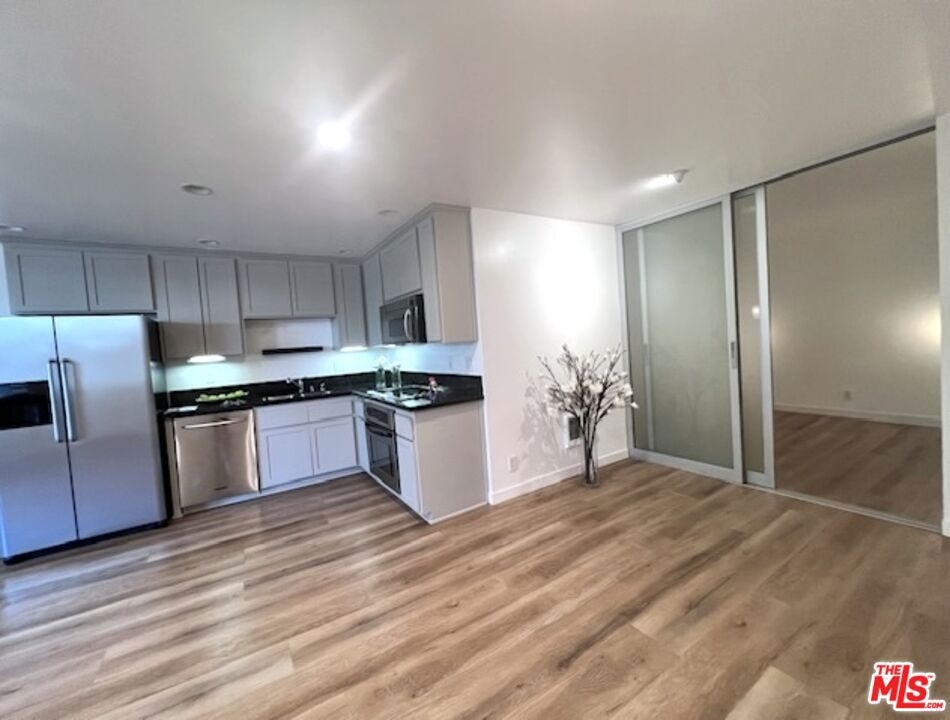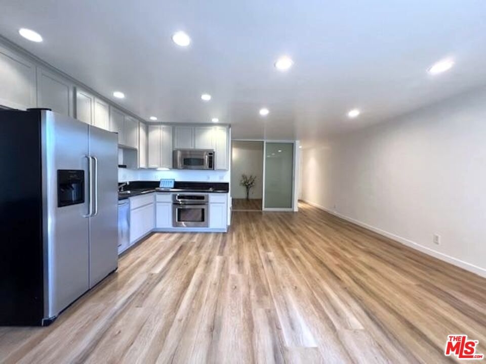 THE LOWEST & BEST PRICED CONDO IN BRENTWOOD!! - JUST REDUCED FOR IMMEDIATE SALE!! This magnificent sun-filled, bright, upper, spacious Pied-a-Terre with a Zen-like ambiance boasts a flow of pure elegance and style combining sophistication and functionality with efficiency living at its best. From a fully equipped huge chefs kitchen with beautiful refinished wood cabinetry, stainless steel appliances with large fridge, to a nice dining area with a cool lamp, and spacious living area which opens onto a large breezy balcony surrounded by lush greenery for cool summer drinks or dinner. The space is accentuated by the beauty and style of the two magnificent floor to ceiling frosted glass sliding doors to the bedroom area which can be moved from right to left or left to right. Ask for additional information. The space has hanging matching contemporary light sconces in the bedroom area which compliment the sophistication of this home. On suite redone bath w separate vanity, cool faucet & shower head. Large walk in closet. Newer hard surface flooring. Enter from its formal private center hall to its spacious living area which flows elegantly. Conveniently situated in the rear of the security building within steps to the rear elevator. With almost 600 sq ft and no hallways besides the entry, most of the square footage is usable. Security 6pm-2am most days. Newly remodeled Pool, spa. Gated Parking. HOD include earthquake Insurance. Vacant and easy to show. Ideally located right in the heart of Brentwood on its famous Montana Avenue, within a few minutes walking distance to all the neighborhood's trendy shops & restaurants and farmers market. This fabulous gem is not to be missed! Very easy to show! Bring your toothbrush! A real Beauty! Great investment or owner user!